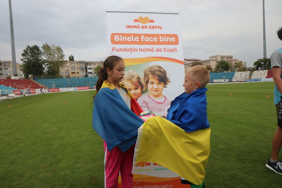 Una dintre acțiunile de integrare a copiilor ucraineni în comunitate, sub deviza ”Binele face bine”, a avut loc la Stadionul ”Oțelul”, acolo unde copiii din cadrul Fundației ”Inimă de Copil” au putut juca un meci de fotbal chiar pe terenul principal. Băieți și fete de toate vârstele, destinşi de parcă ar fi fost în curtea școlii și puneau câte două ghiozdane pe loc de porți – așa cum li se tot întâmplă copiilor, indiferent de mediul în care cresc, au jucat alături de doi fotbaliști profesioniști. Le-au făcut ziua memorabilă unul dintre golgheterii Ligii a II-a, George Cîrjan și un alt atacant, ucraineanul Bokashvili, ambii legitimați la Oțelul. La meci au asistat cu entuziasm și părinții copiilor, emoţionaţi până la lacrimi de bucuria stârnită de jocul de fotbal.