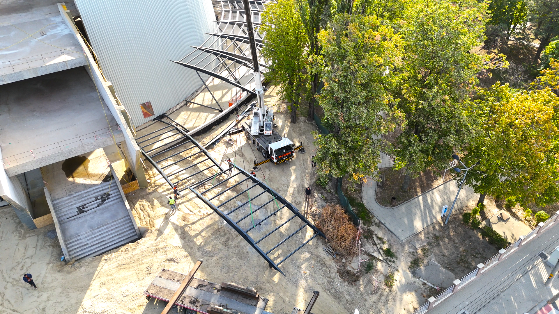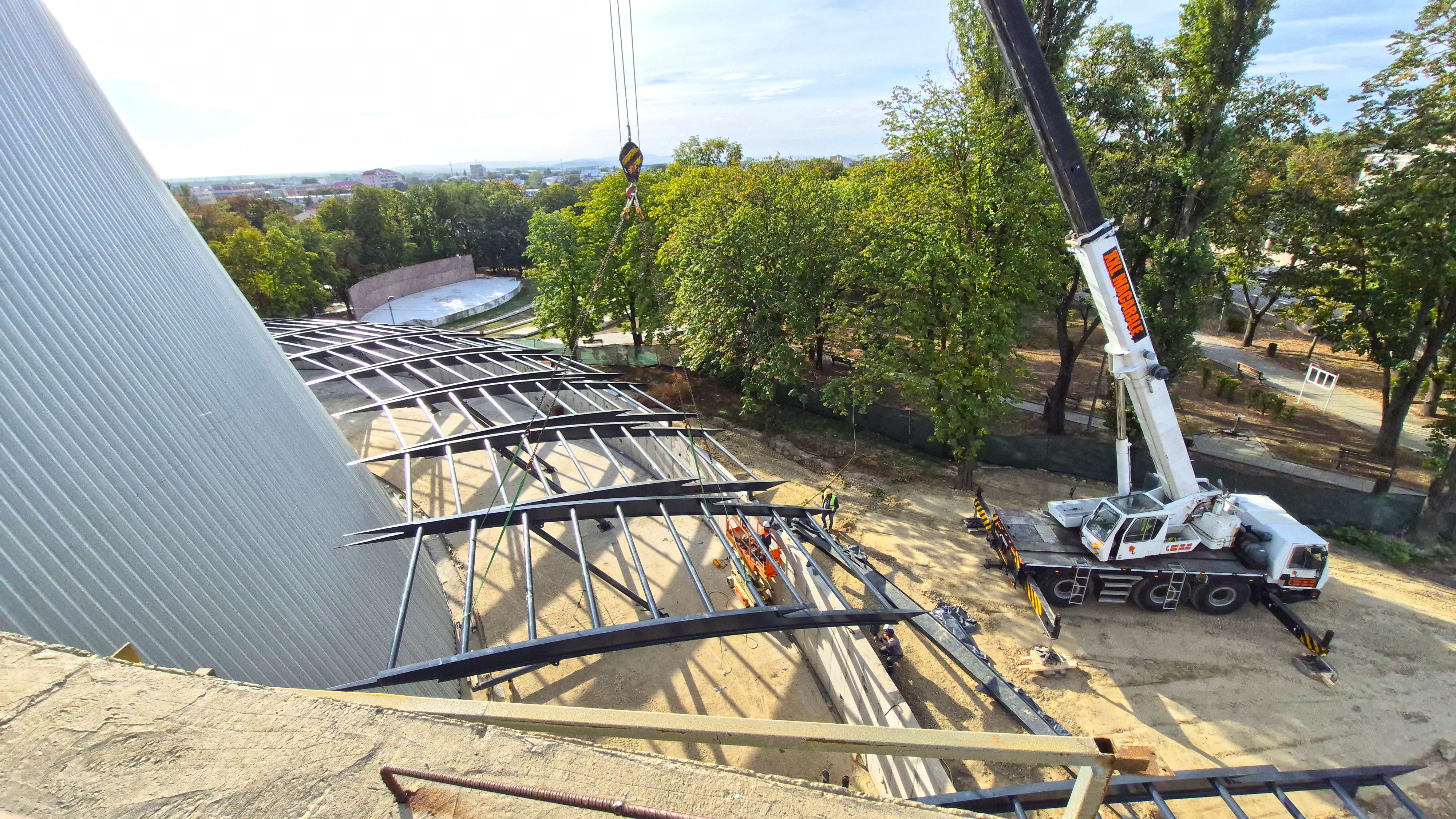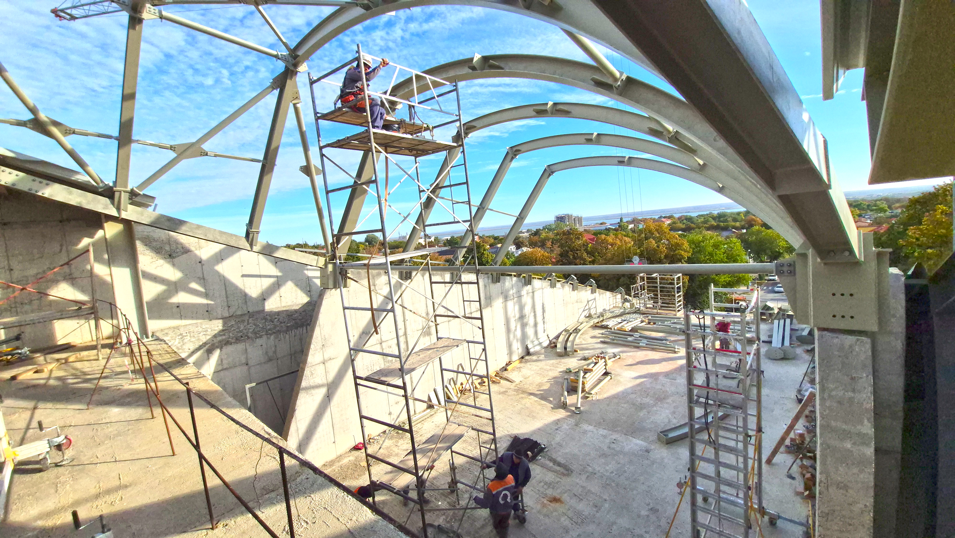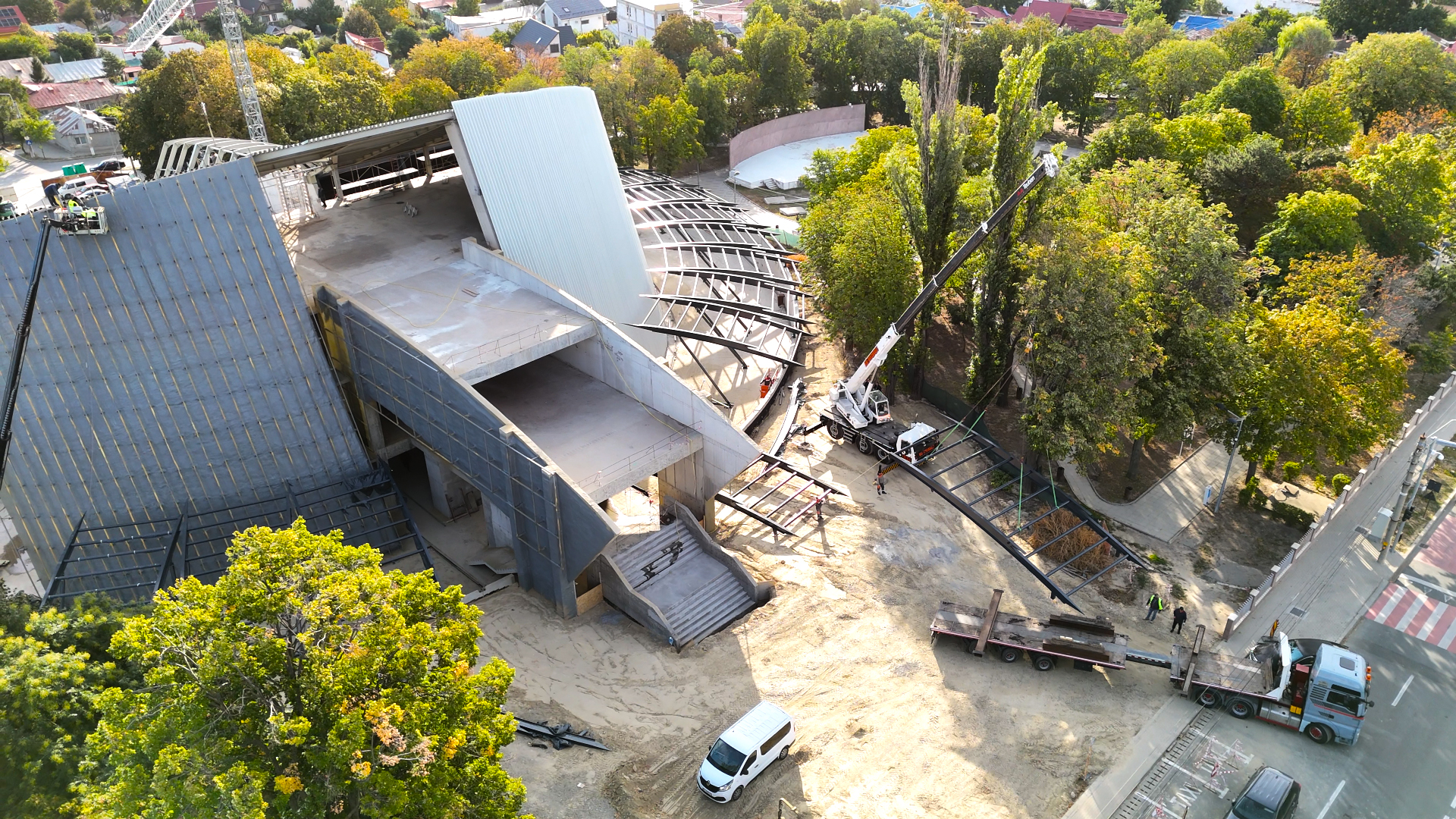 Drept urmare, în aceste zile se va finaliza montarea structurii metalice pentru galeriile exterioare, precum și a arcelor ce vor fi acoperite cu sticlă stratificată, din partea superioară a clădirii”, informează Costel Fotea, președintele Consiliului Județean Galați.