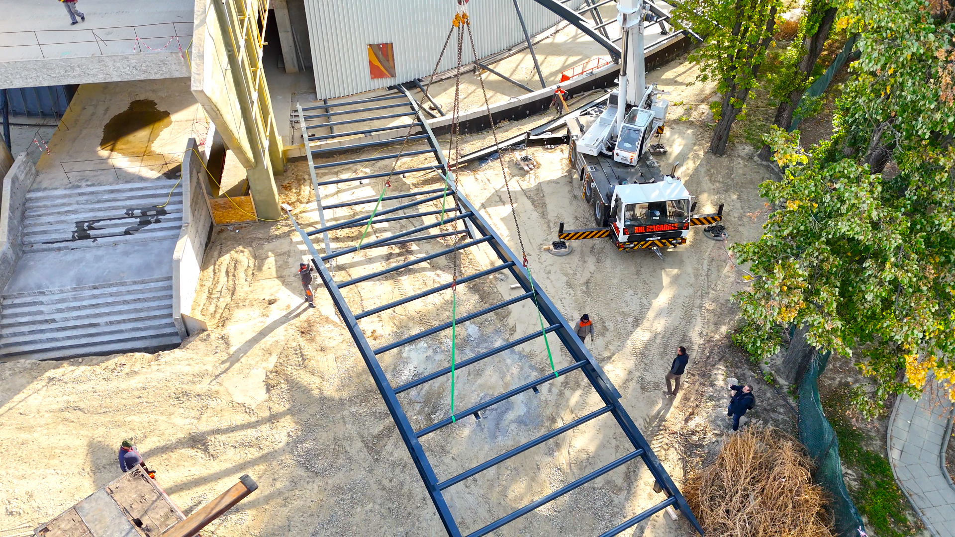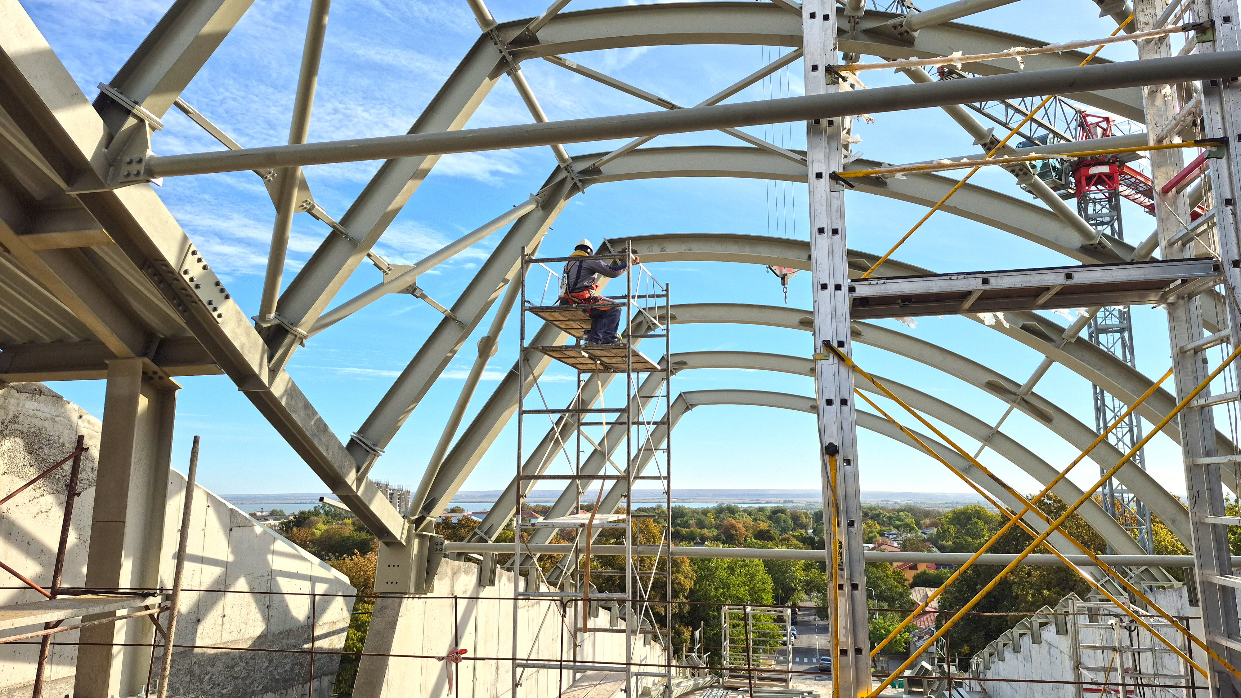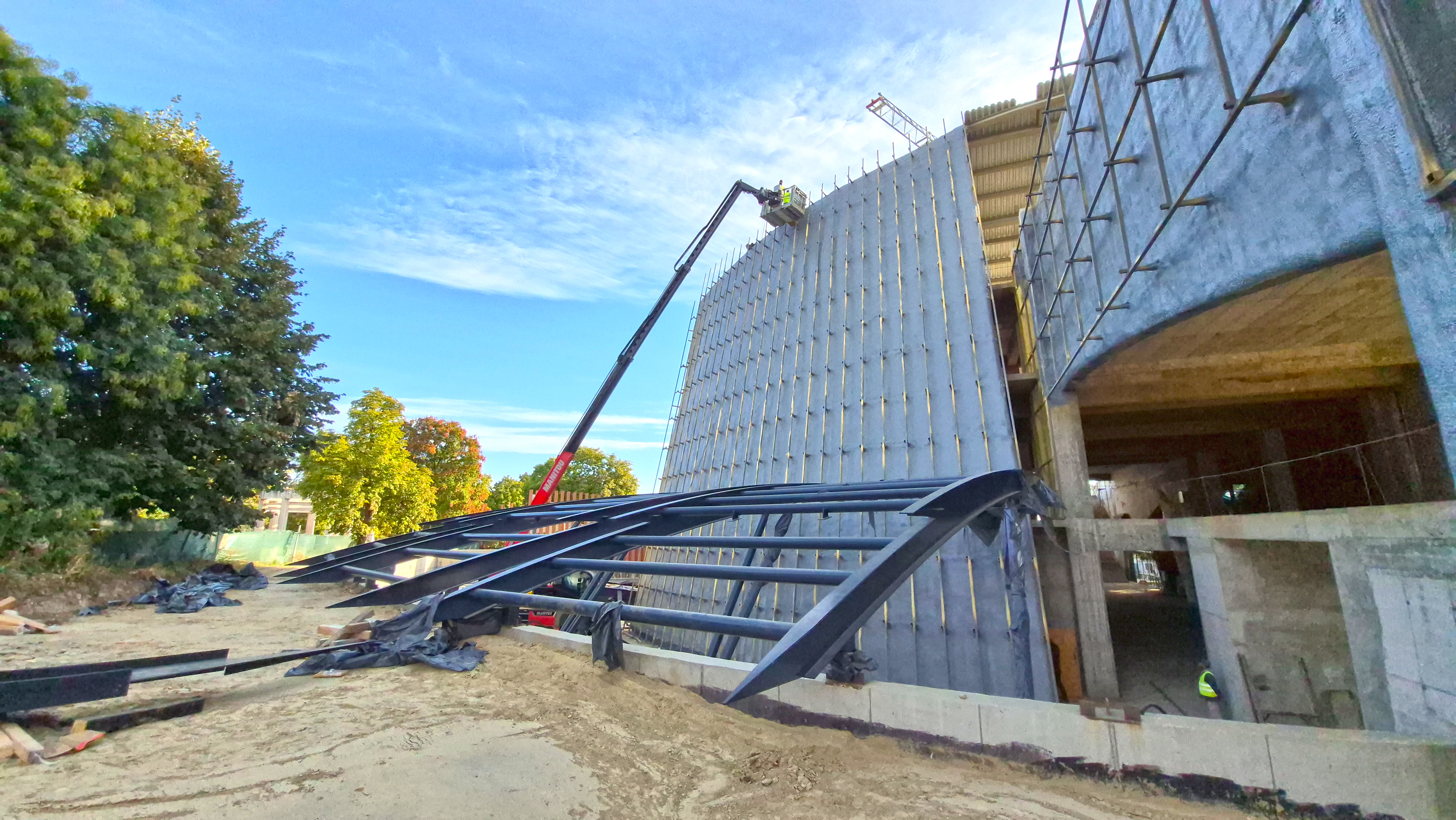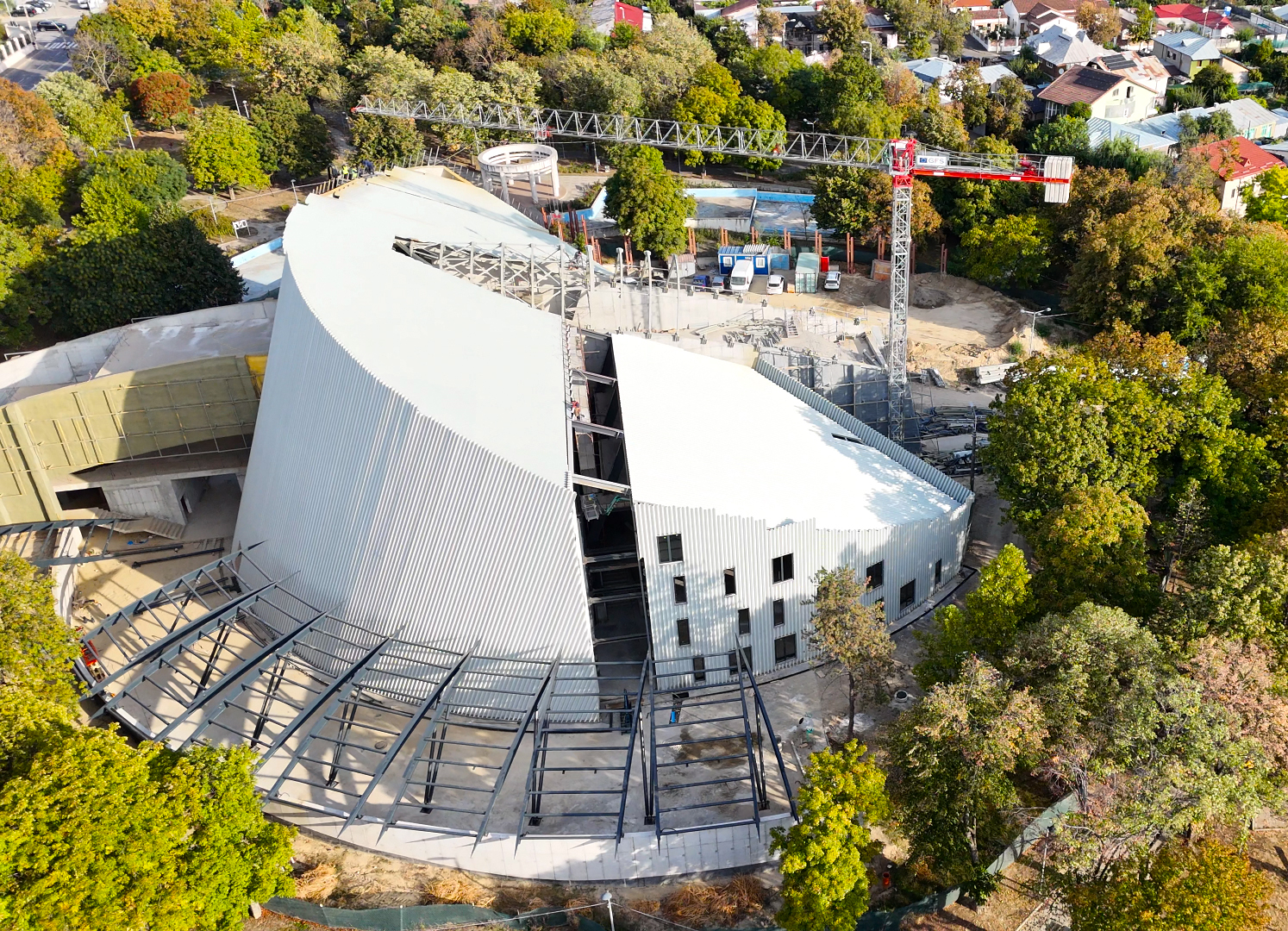 Drept urmare, în aceste zile se va finaliza montarea structurii metalice pentru galeriile exterioare, precum și a arcelor ce vor fi acoperite cu sticlă stratificată, din partea superioară a clădirii”, informează Costel Fotea, președintele Consiliului Județean Galați.