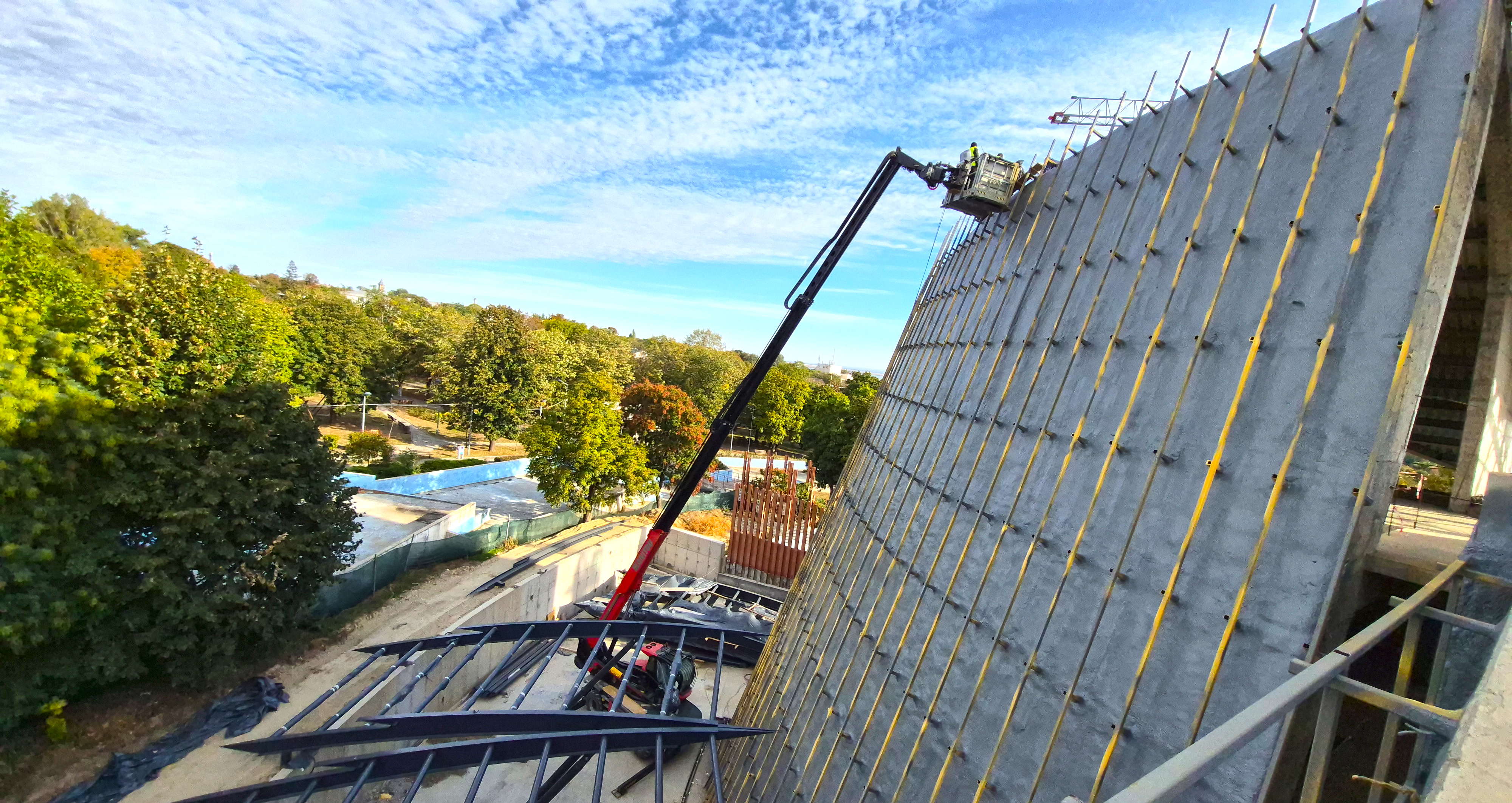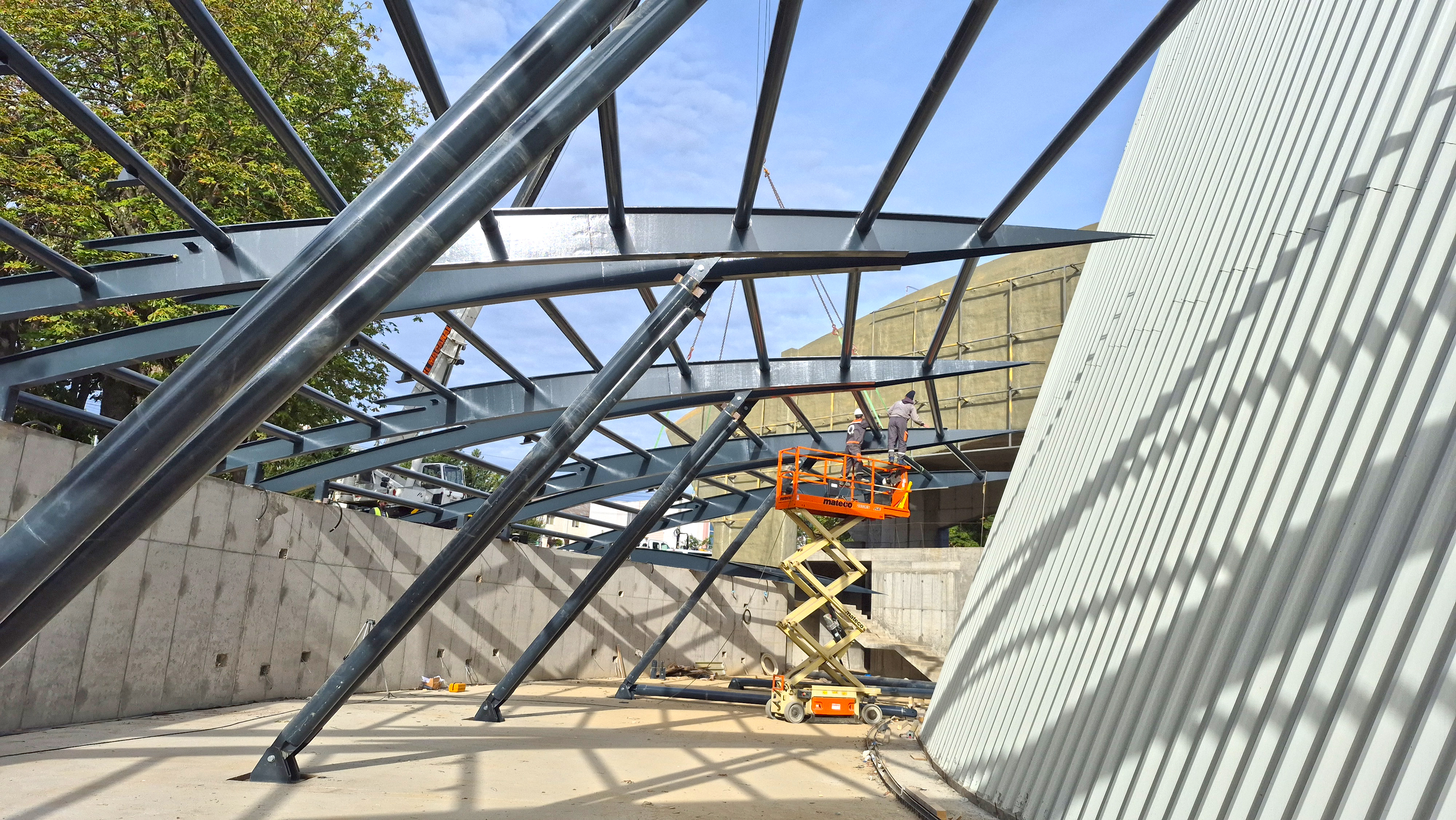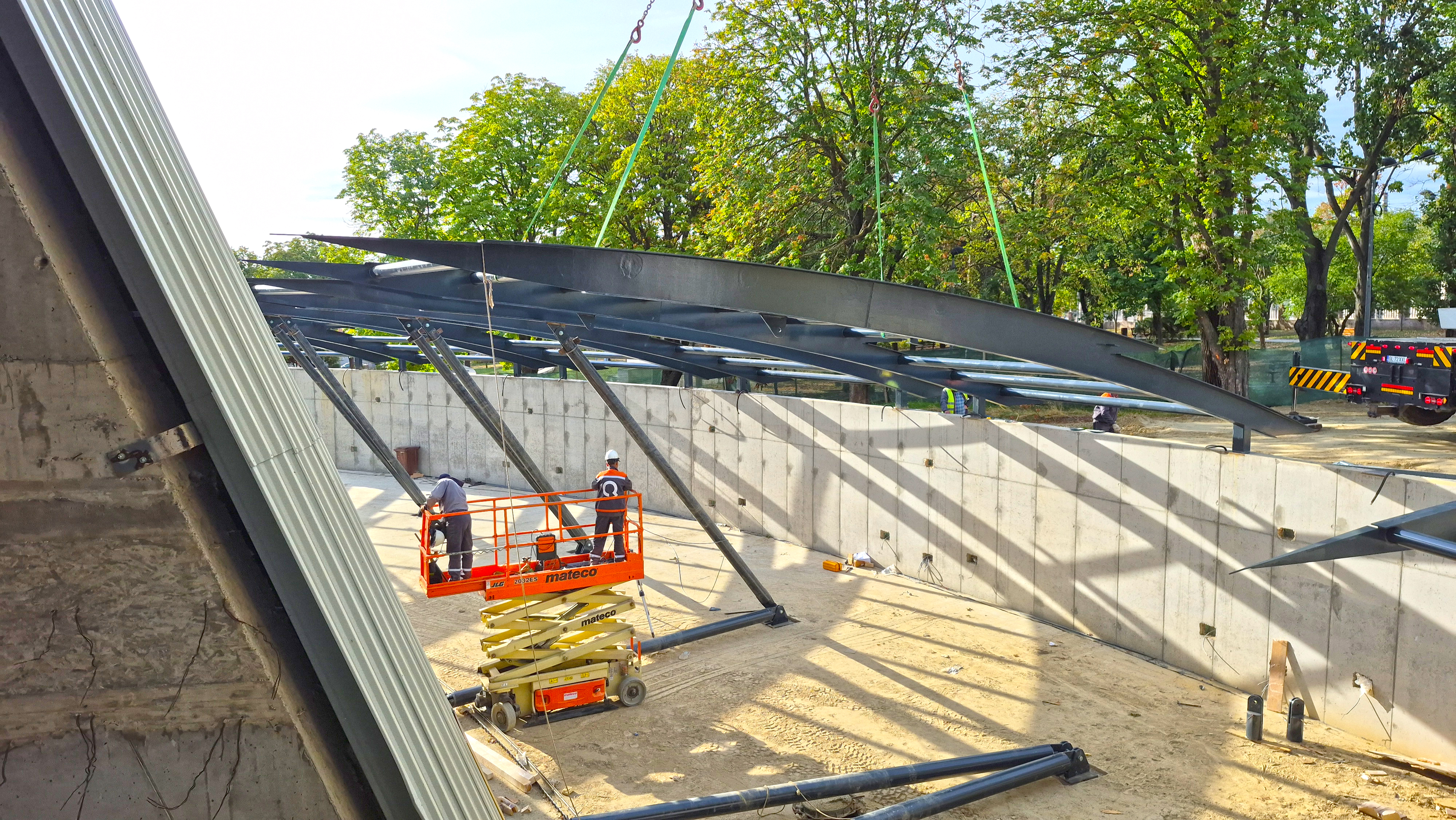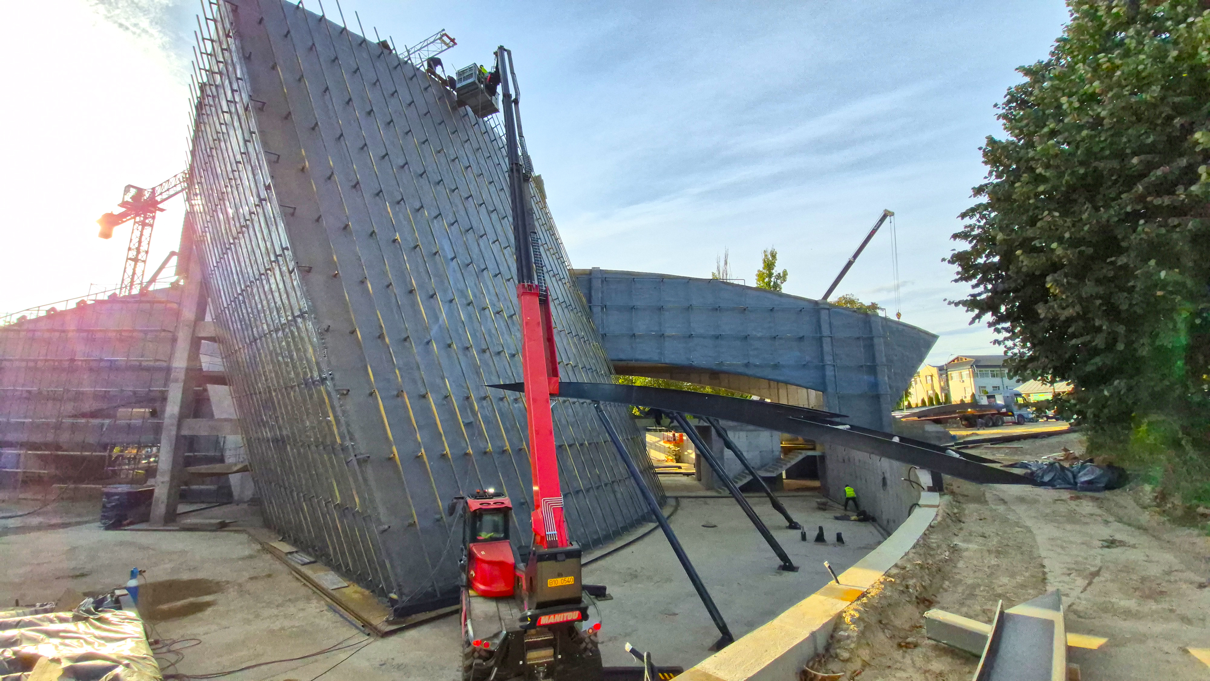 Drept urmare, în aceste zile se va finaliza montarea structurii metalice pentru galeriile exterioare, precum și a arcelor ce vor fi acoperite cu sticlă stratificată, din partea superioară a clădirii”, informează Costel Fotea, președintele Consiliului Județean Galați.