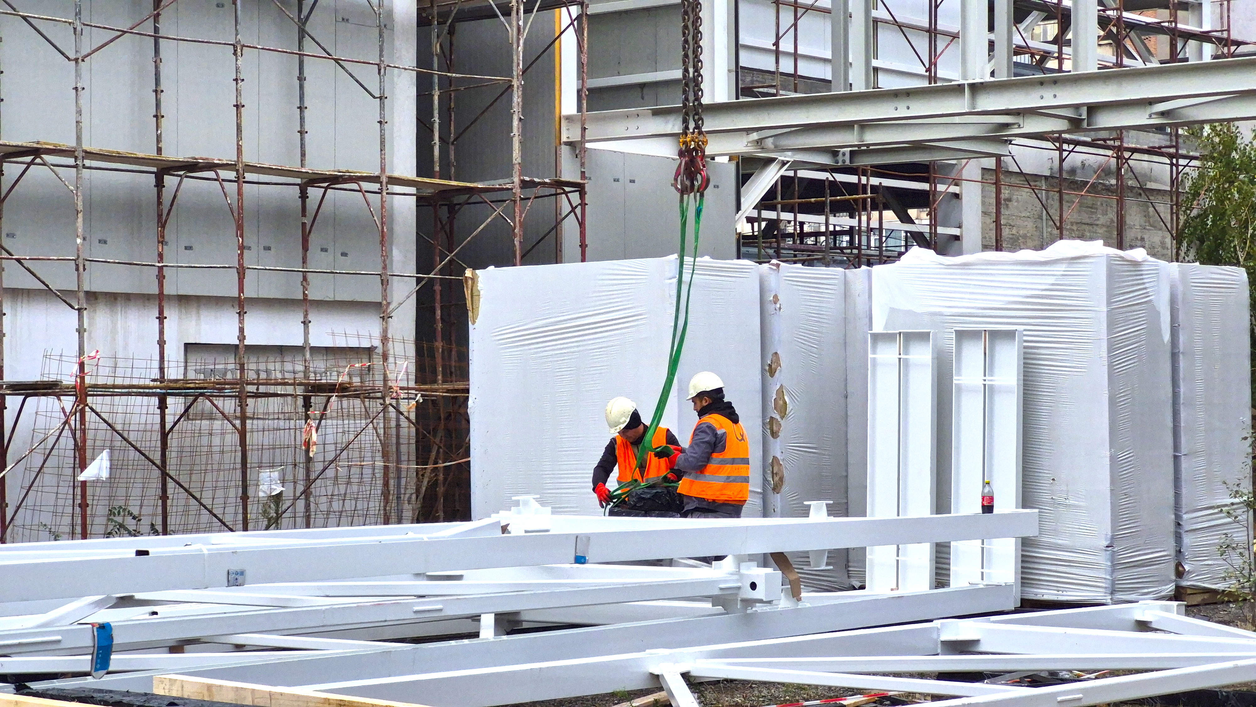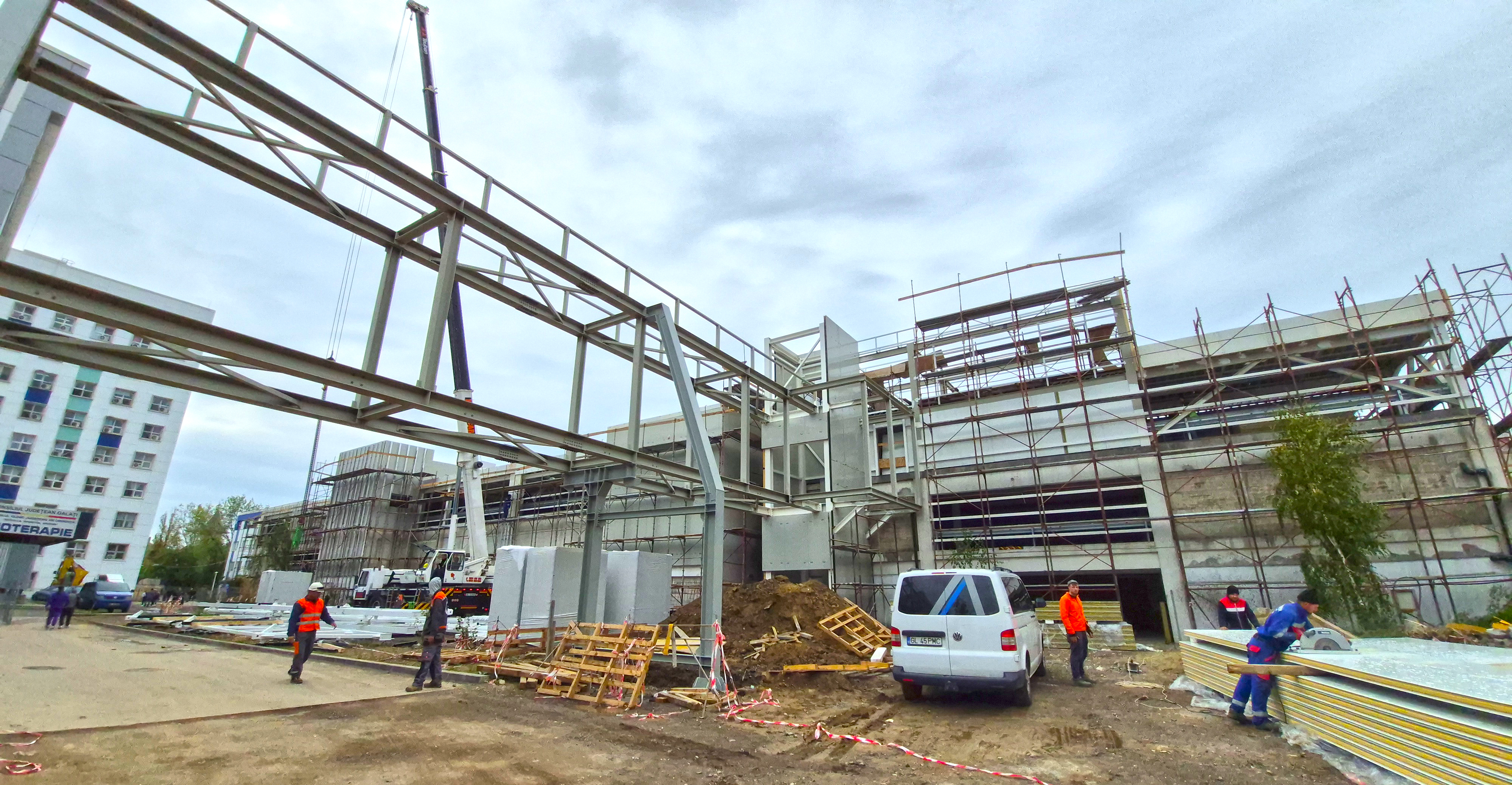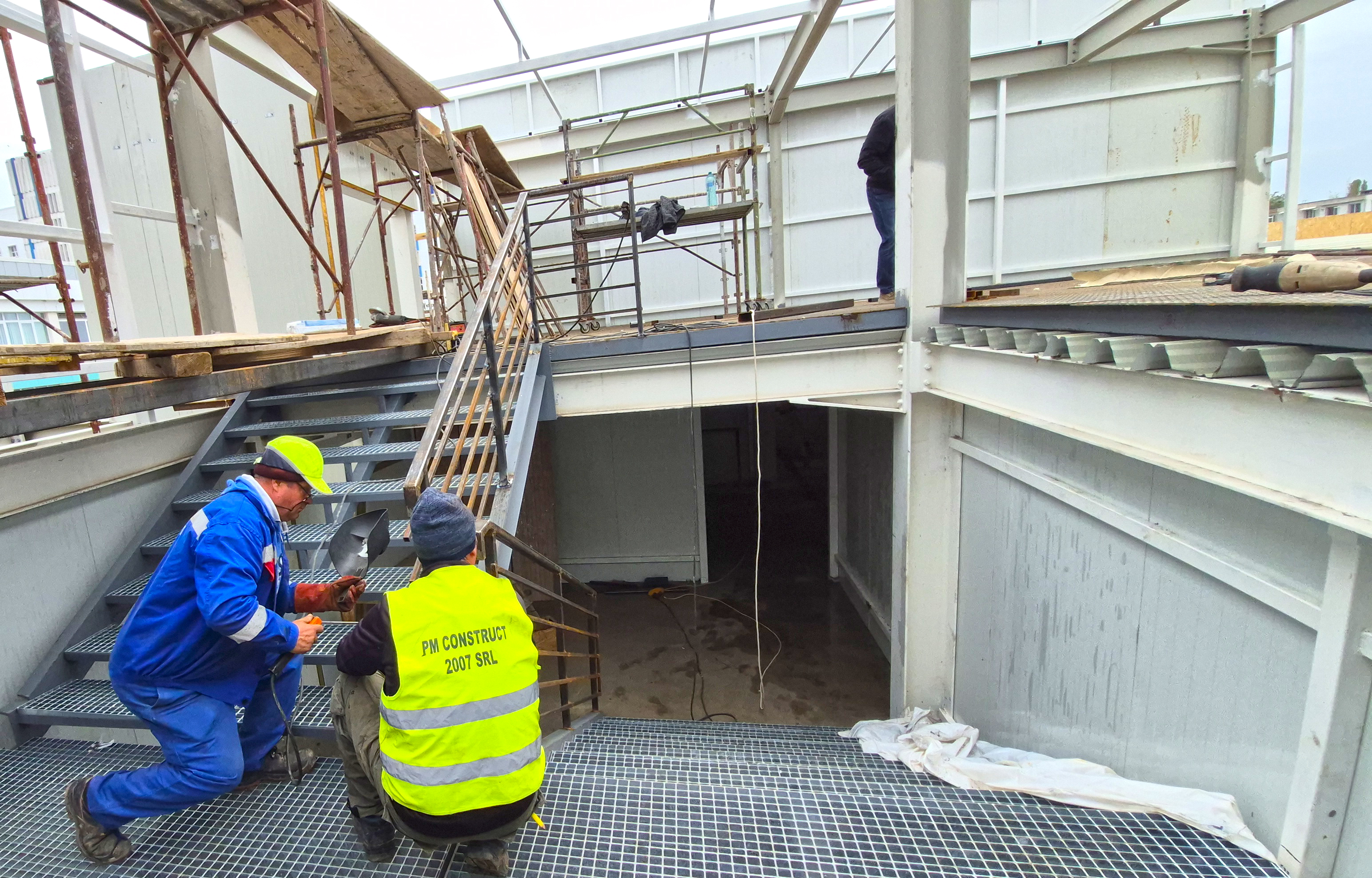 Constructorii mai desfășoară lucrări și la structura fațadei ventilate, o componentă importantă în asigurarea eficienței energetice și a aspectului modern al construcției.