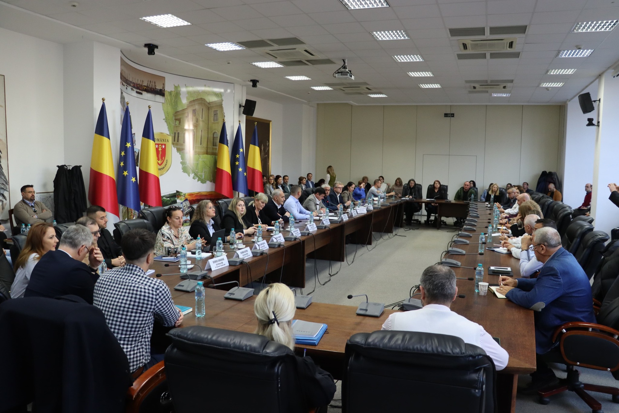 Astăzi, la sediul Consiliului Județean Galați, a avut loc o întâlnire între specialiști ai Ministerului Fondurilor Europene și reprezentații celor 60 de companii gălățene care derulează proiecte finanțate prin Programul Tranziție Justă, Prioritatea 2 – Componenta „Investiții productive pentru IMM-uri”.