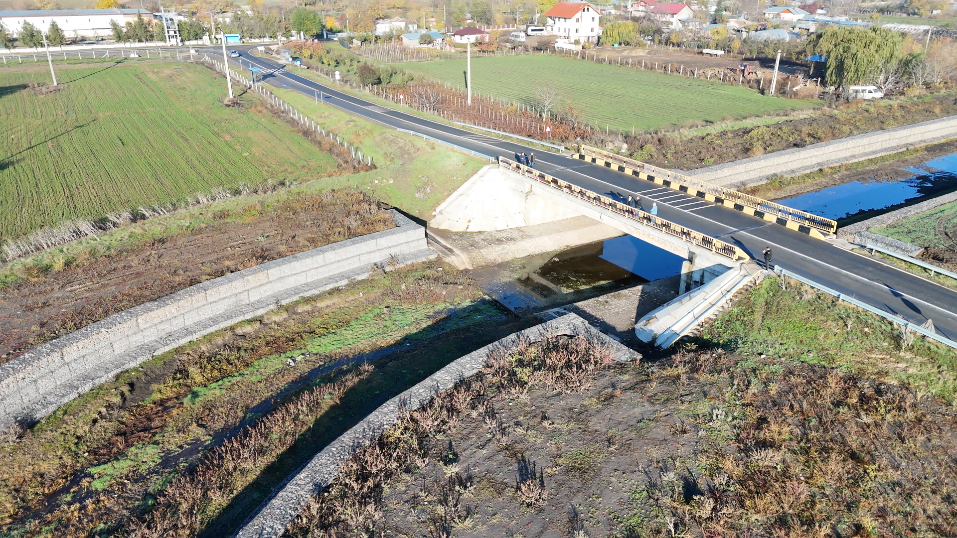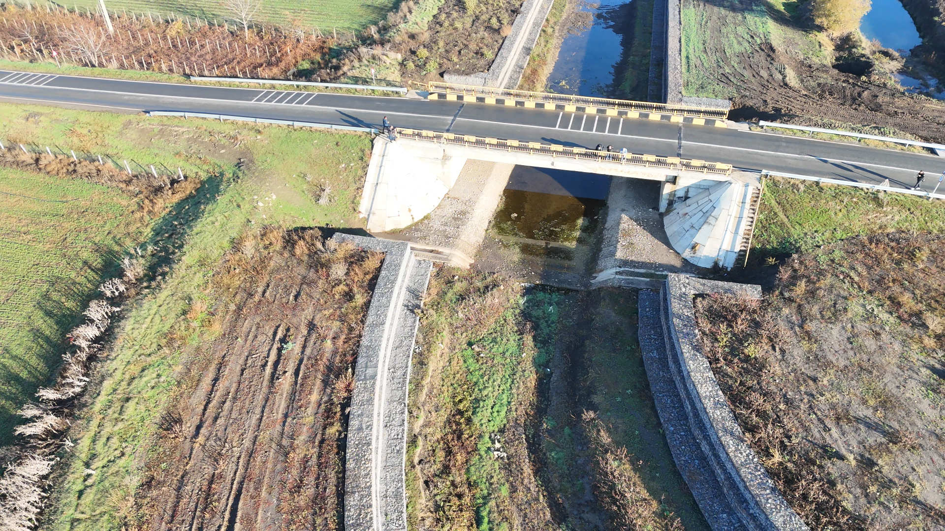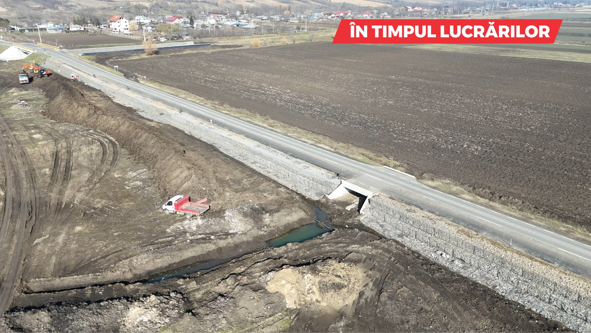 În zona podului de pe DJ 255 s-au realizat și lucrări de regularizare a albiei, atât în amonte, cât și în aval, iar malurile au fost protejate prin montarea de gabioane umplute cu piatră, care asigură stabilitatea și protecția construcției.