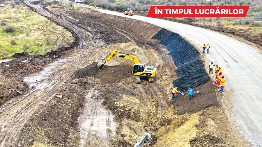 Pentru stabilizarea terenului, s-a realizat o umplutură de pământ de 5 metri adâncime, iar vechiul tub de scurgere a apelor pluviale a fost înlocuit cu un podeț nou, de 14 metri lungime. De asemenea, s-a refăcut integral structura de rezistență a drumului, iar carosabilul a fost lărgit la 6 metri. Curbele din zonă au fost reconfigurate pentru a spori siguranța circulației. În plus, s-au montat parapete metalice și s-au refăcut marcajele rutiere.