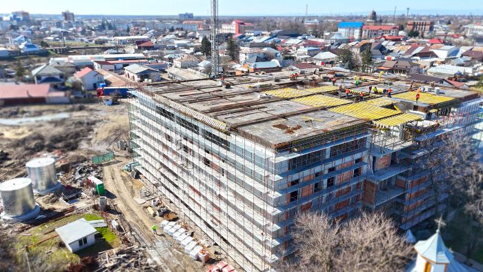 ”În prezent, se desfășoară lucrările de cofrare și montare a armăturii, astfel încât, la doar un an de la turnarea fundației, întreaga structură de bază a clădirii să fie finalizată.