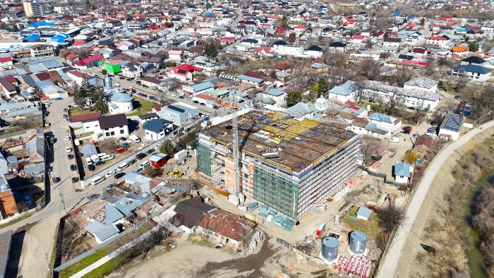În paralel, continuă lucrările de zidărie și compartimentare interioară, precum și lucrările la instalațiile de utilități - electricitate, apă și canalizare, aer condiționat și climatizare.