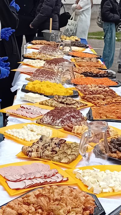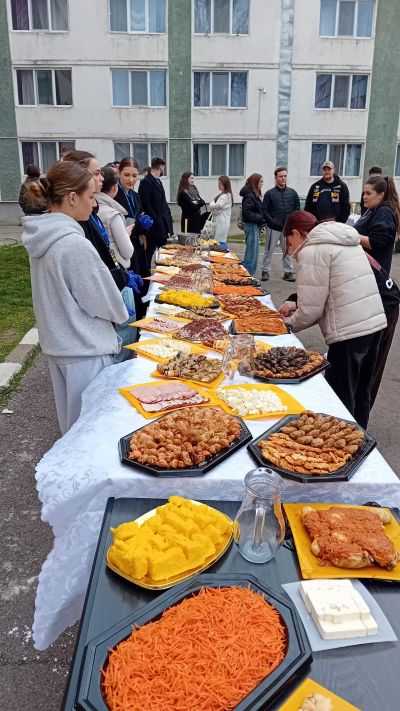 Însoțiți de Mihai Bratu, președintele Clubului Studenților Basarabeni și Bucovineni "Ștefan cel Mare", care le-a asigurat traducerea, oaspeții au oprit la fiecare din standurile cu produse tradiționale preparate de studenți. Vizibil încântați de imaginea platourilor cu mâncare, distinșii oaspeți au dorit să afle ce produse sunt apreciate, cum sunt numite popular și ce reprezintă fiecare dintre ele, dar și modul în care sunt preparate de gospodine. Savuros a fost când una dintre bucătărese, studentă din Găgăuzia (alături de alte 5-6 tinere din Comrat sau împrejurimi) a subliniat că, la prepararea bucatelor, au colaborat și studenții băieți, mulți dintre ei știind să gătească din familie, de acasă.