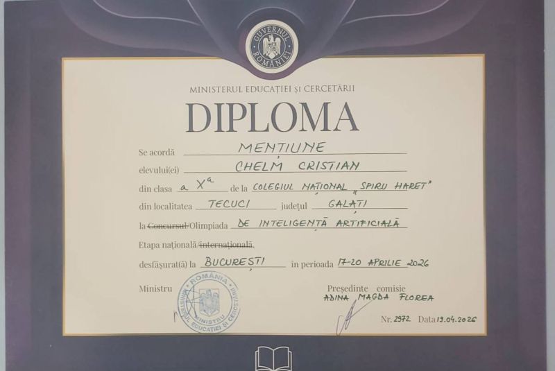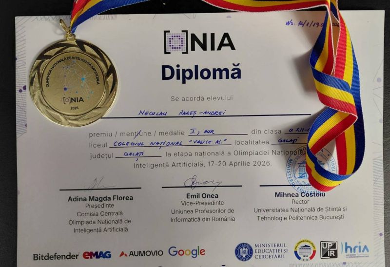 Gălăţenii au obţinut rezultate deosebite la Olimpiada Națională de Inteligență Artificială, aflăm dintr-un anunţ al Inspectoratului Şcolar Judeţean.