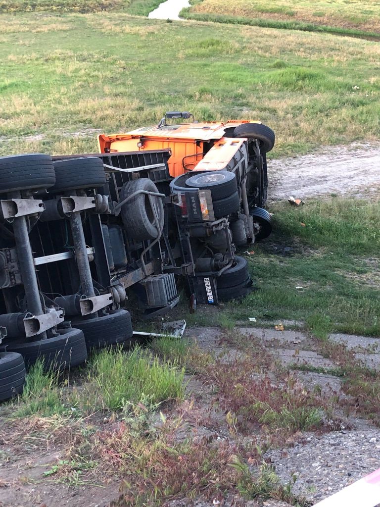 Un accident rutier determinat de probleme tehnice a avut loc marţi seară, 25 mai 2021, în jurul orei 20.00, pe DN 25, la ieşirea din comuna gălăţeană Piscu, spre Galați. Un autotren s-a răsturnat în afara părţii carosabile, după ce i-a explodat în curbă cauciucul din stânga spate, iar şoferul a pierdut controlul volanului.