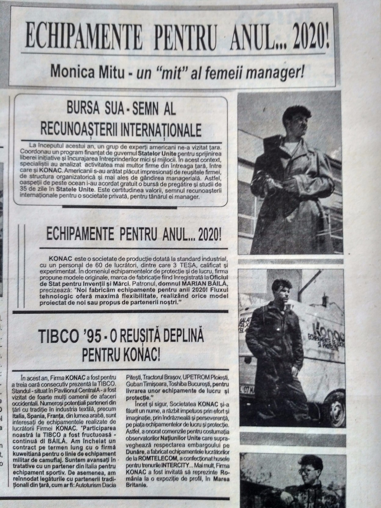 Marian a venit la fabrică să mă cunoască personal şi să îmi propună să merg să lucrez pentru el: să deschidem o societate de producţie care să angajeze femei şi să confecţionăm haine. Aşa s-a născut Konac SRL, făbricuţa care a confecţionat toate hainele de lucru ale Romtelecom, Renel şi ale câtorva licee care au vrut uniforme speciale.