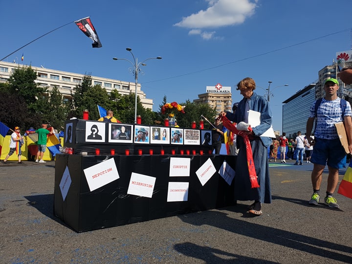 Trebuie spus că organizatorii protestului au amenajat în Piața Victoriei un altar în memoria celor considerați ca fiind victime ale corupției, indolenței și incompetenței Guvernului pe care sunt puse fotografii cu Alexandra și Luiza, victimele din Caracal, Ilie Gâzea, bărbatul de 62 de ani din Teleorman care a murit la o săptămână după ce a inhalat gazele lacrimogene ale jandarmilor la protestul din 10 august 2018, și cei 65 de tinerii care și-au pierdut viața în urma incendiului de la Colectiv.