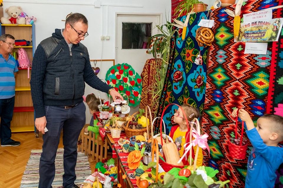 Prichindei, părinți, bunici au participat cu bucurie la prima ediție a târgului "Zâmbește, Toamna ne sevește!”, organizat în colaboare cu Școala Gimnazială Nr. 7 şi Administrația Piețelor Agroalimentare.