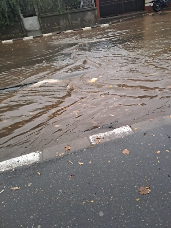 Prin oraș deja se circulă dificil pe anumite artere, iar ploaia puternică nu s-a oprit.