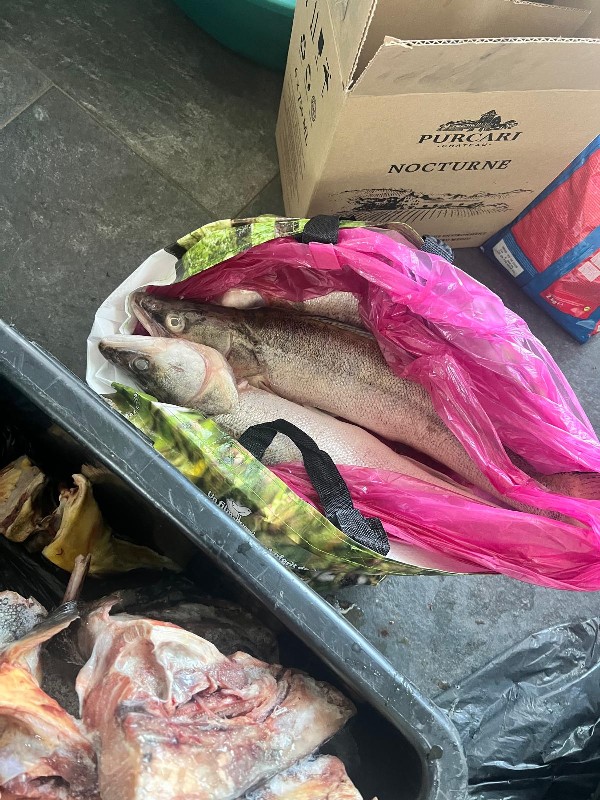 ”În urma acestei percheziții domiciliare au fost ridicate mai multe produse din pește, respectiv, zece kilograme somn și 11,7 kilograme șalău în stare proaspătă, respectiv 29 kilograme scrumbie, un exemplar somn de 25 kilograme congelat, 17,5 kilograme tacâmuri somn și crap, 20 kilograme tacâmuri sturion, crap și somn în amestec, două exemplare păstrugă în greutate de 8,4 kilograme, zece kilograme file secționat din specia somn, toate aceste cantități de pește fiind în stare congelată. De asemenea, au fost ridicate 10,5 kilograme icre din specia știucă și 17,7 kilograme icre din specia crap”, au detaliat anchetatorii la finalul percheziției.