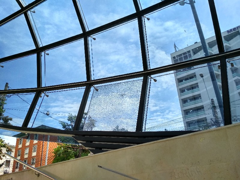 Despre geamurile sparte ale copertinelor – noroc că este sticlă securizată – nu mai e nimic de spus! Sunt cel puțin patru la Romarta și vreo două, peste stradă.