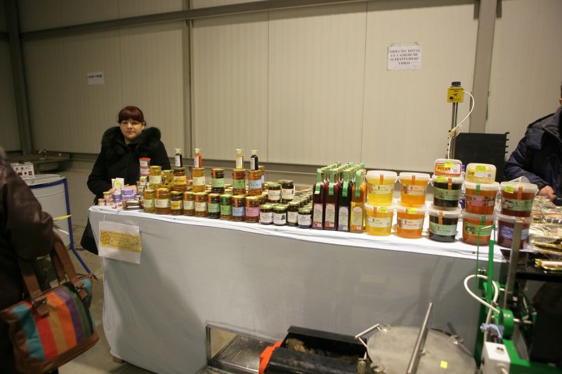 Încă de la intrare, pe partea stângă, printre standuri cu diferite modele de stupi şi alte echipamente de profil, privirea îţi este fără îndoială atrasă de trei mese lungi, pline ochi cu dulciuri. De la ciocolată până la napolitate, nuga sau fursecuri, toate bunătăţile au în comun un ingredient: mierea de albine. Expozanţii, soţ şi soţie, au bătut toată ţara pentru a ajunge de la Arad la Galaţi. Spun că sunt pentru prima oară aici şi că deşi vânzările nu au mers chiar aşa cum s-ar fi aşteptat în prima jumătate de zi, sunt mulţumiţi de faptul că vizitatorii sunt încântaţi de produsele lor. „Totul este fabricat de noi, după reţete pe care le-am preluat de la părinţii mei. Sunt dulciuri în totalitate naturale, zahărul este înlocuit în mare parte cu miere de albine. Nu conţin nici conservanţi sau aromatizatori artificiali. Şi asta se vede la gust, ne-o spune orice client”, explică arădeanul. Pentru a-i convinge pe curioşi că nu sunt doar vorbe goale, cei doi le dau să şi guste. Fermecaţi pe loc, cei mai mulţi cumpără din fiecare sortiment câte ceva. „Vindem atât în ţară, cât şi în străinătate. Anul trecut am ajuns în Spania, spre exemplu, într-un oraş cu foarte mulţi români. Au mâncat pe săturate, după care au luat şi la pachet. Ne mulţumeau şi ne spuneau că le-am adus aminte de România. A fost plăcut”, reiterează arădeanul vizita în peninsula iberică.