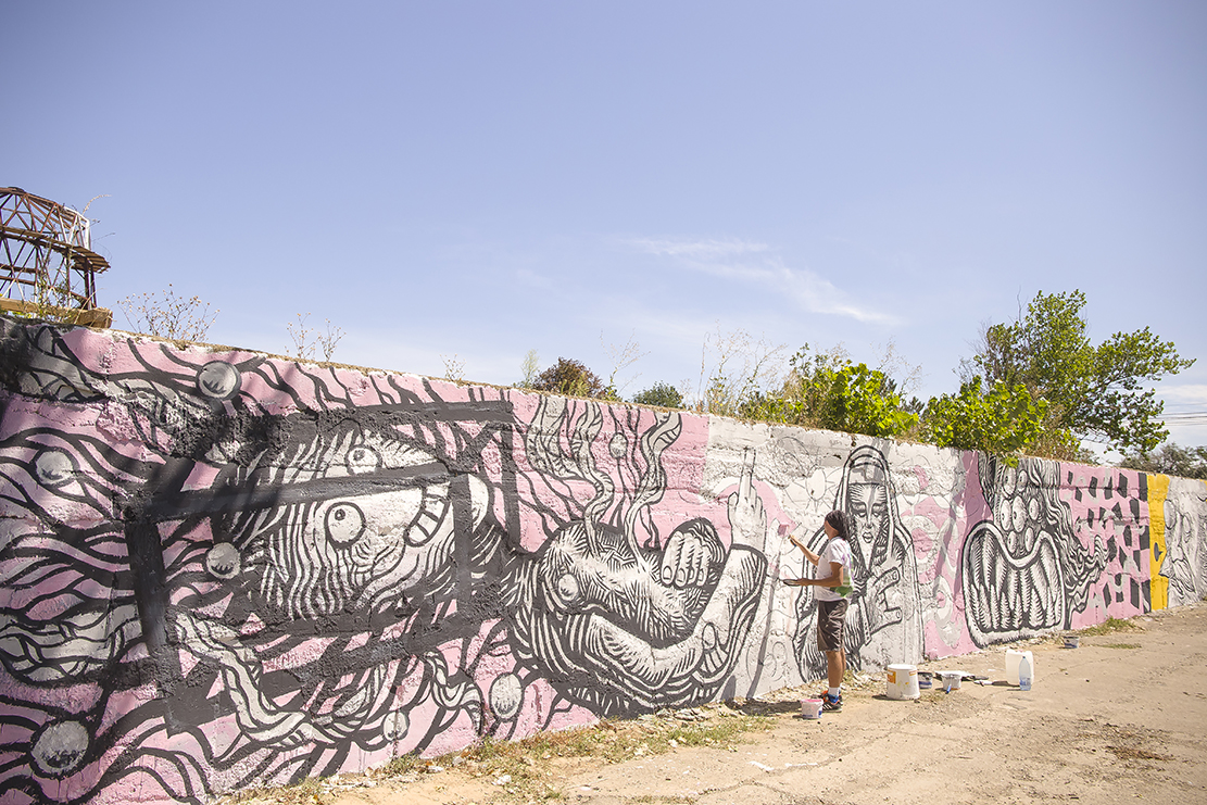 Lucrările, care acoperă în total 3.000 de metri pătrați, au fost realizate de artiștii Pisica Pătrată, Pandele Radu, Robert Obert, Harcea Pacea, Atoma, Roper, Medeea Nămoloșanu, Iluc, Cristian Corolenco, Yuppa, Ionuţ Popescu, Vladude, Eufonic și Cristian Scutaru, cărora li s-a alăturat Peluza Nord Oțelul Galați.