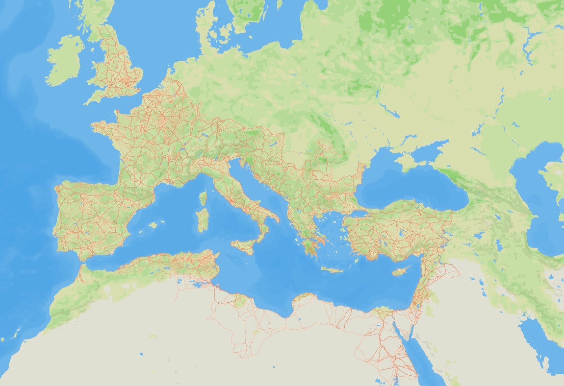 Noua hartă dezvăluie 110.616 km de drumuri care nu au fost cartografiate anterior. Potrivit cercetătorilor, această creștere se datorează unei acoperiri mai bune a drumurilor din Peninsula Iberică, Grecia și Africa de Nord, precum și corectării unor drumuri propuse anterior, care au fost adaptate la relieful real - de exemplu, drumuri șerpuite prin munți, nu linii drepte nerealiste.