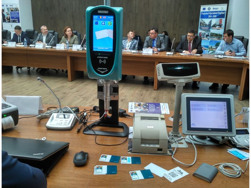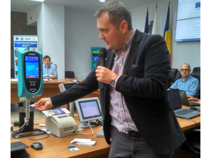 Primăria Galaţi a găzduit, ieri, cu ocazia conferinţei de lansare a proiectului european „Furnizarea Sistemelor de Colectare Automată a Tarifelor de Călătorie, de Informare a Pasagerilor şi de Management al Flotei de Vehicule pentru Municipiul Galaţi” (e-ticketing), o demonstraţie practică a noului sistem care ar urma să devină operaţional din această toamnă.