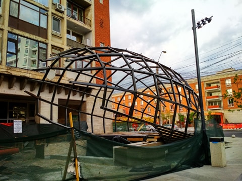 UPDATE - Primăria municipiului Galați a finalizat operațiunile de montare a copertinei care va proteja una dintre intrările în Pasajul "Dunărea”. Conform Primăriei, copertinele din sticlă prinsă pe structură metalică, au un rol decorativ, şi se vor încadra în noul context arhitectural al centrului municipiului Galaţi. "OZN"-uri, după cum le-au numit, în glumă, gălăţenii, după ce au văzut randările.