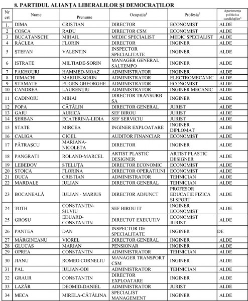La ALDE, actualii consilieri sunt pe lista de candidaţi, dar nu în poziţii eligibile.