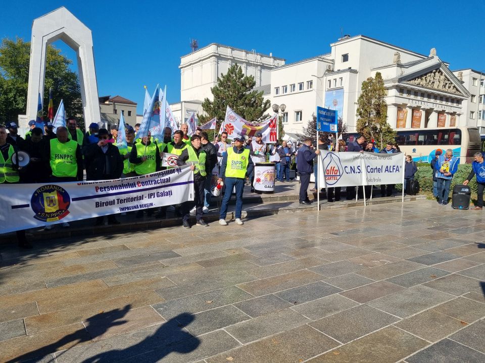 Aproape 200 de sindicaliști au protestat, marți, timp de aproape două ore, în fața Prefecturii Galați, în cadrul "Marșului anti-sărăcire" derulat de confederația Cartel ALFA în această săptămână. S-a scandat, s-a huiduit, s-au fluturat pancarte, s-au cerut demisii, s-a bătut în tobe și s-a suflat în goarne și vuvuzele, s-a vorbit prin stația de amplificare... Ce mai, a fost un protest ca în vremurile bune ale sindicatelor.