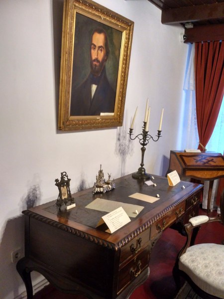 Descoperi, în odaia iluminată de o lampă cu gaz, patul îngust şi modest care i-a aparţinut marelui Mihail Kogălniceanu.