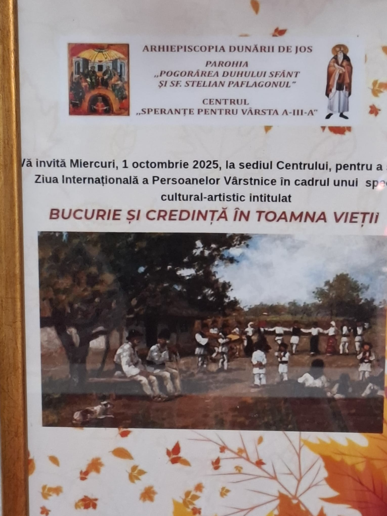Ziua de 1 octombrie, marcată anual ca Ziua Internaţională a Persoanelor Vârstnice, a fost sărbătorită la Galați printr-un amplu program cultural-artistic și social-filantropic, „Bucurie și credință în toamna vieții”, menit să le aducă bucurie și recunoștință celor aflați la vârsta a treia.