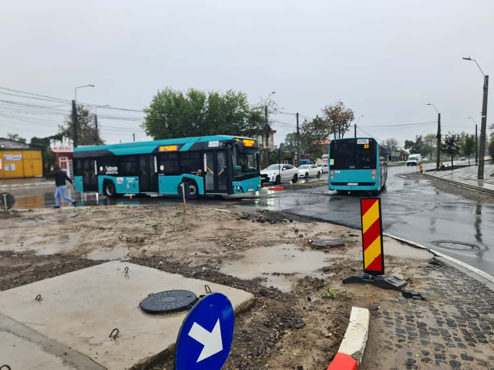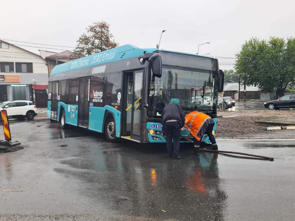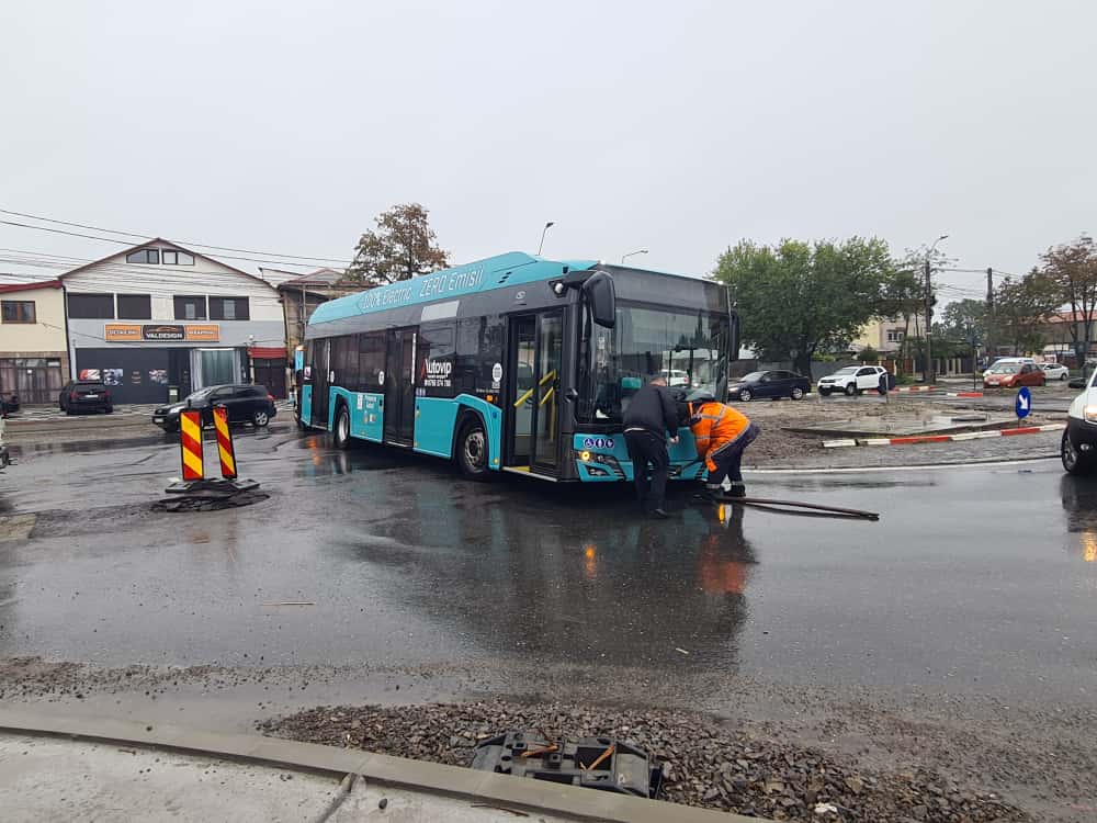 Un autobuz Transurb de pe traseul 28 a rămas înţepenit în nămol, în sensul giratoriu din zona Shopping City, de pe bulevardul George Coşbuc. A fost nevoie de intervenţii pentru a fi repus pe carosabil şi pentru ca traficul în zonă să revină la normal.