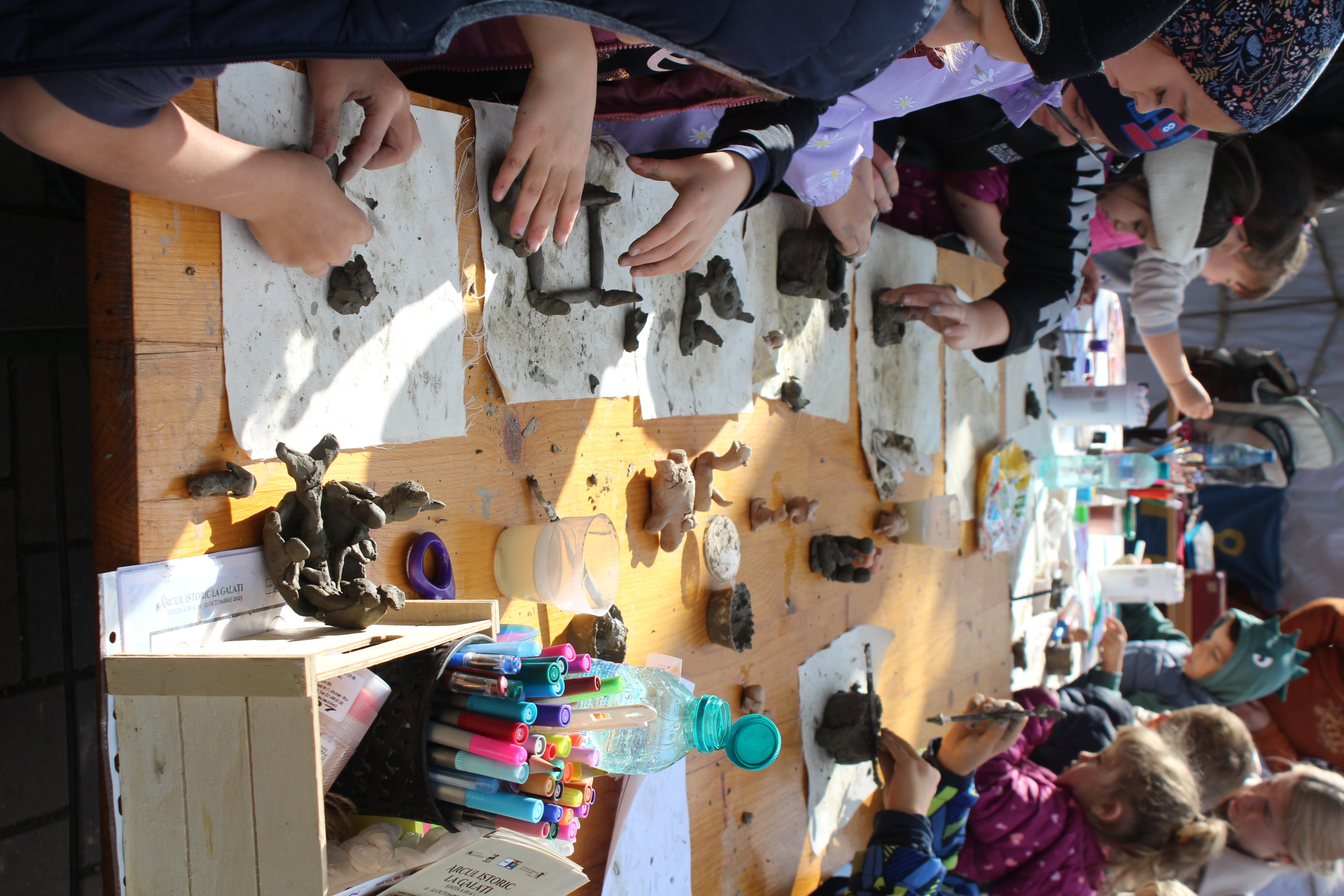 La standurile din Grădina Publică, copiii au lucrat cu mâinile și cu imaginația. Gina Popa, artistă la "Acces Visual Art", a fost copleșită de entuziasmul participanților: „Am fost invitată de o prietenă bună, cu care mai colaborez. La atelierul de lut am făcut modelaj și pictură. Copiii au venit continuu, neîntrerupt. Am venit pregătită cu un baton de lut și l-am terminat în două ore. Am mai cerut un baton și din acela a mai rămas doar o feliuță. Nu am avut timp nici să trag aer în piept. Copiii au creat liber, după propria inspirație, și i-am încurajat.”