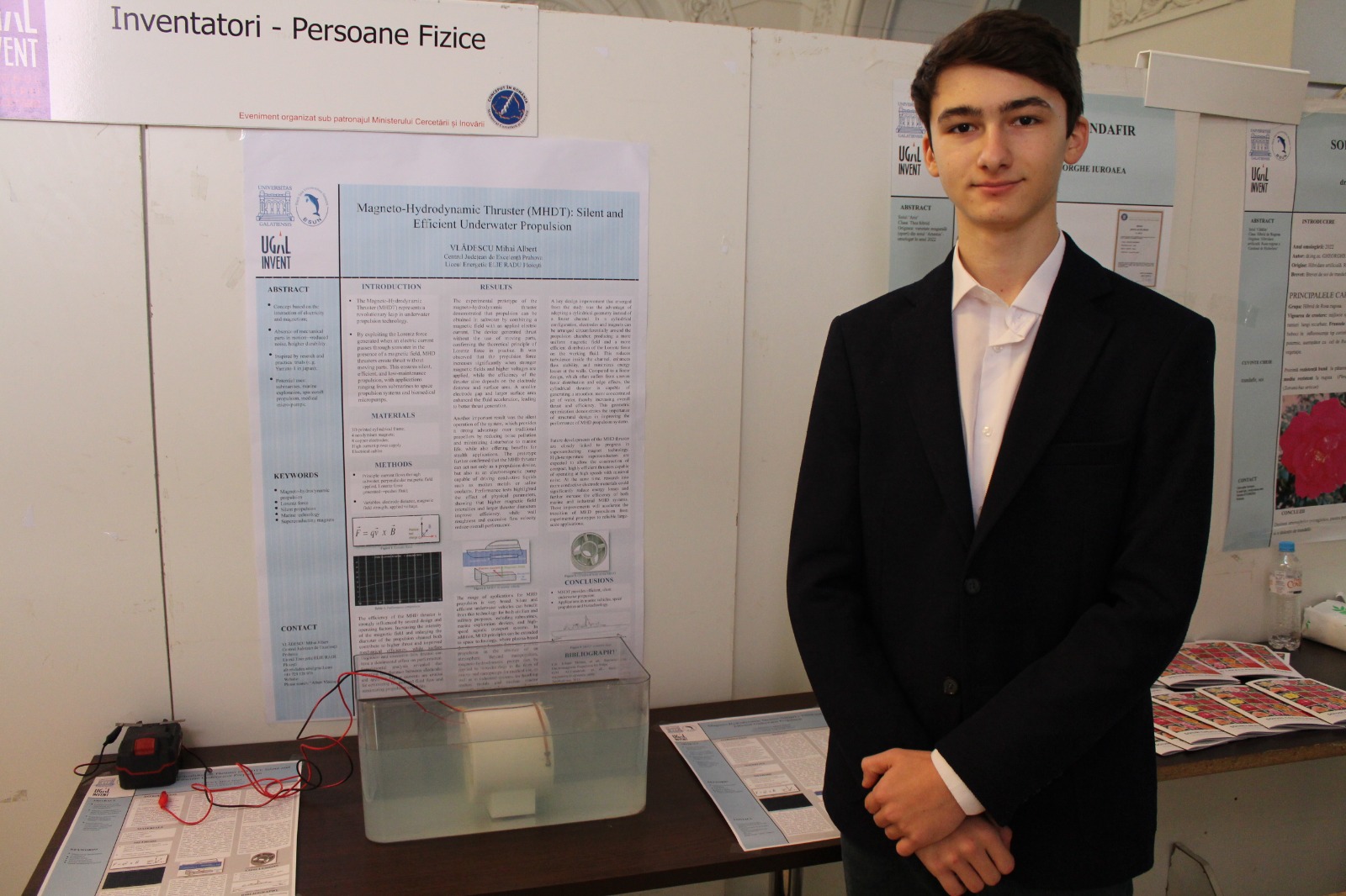 Printre participanți s-a remarcat Mihai Albert Vlădescu, elev în clasa a IX-a din Ploiești, care a adus un propulsor MagnetoHidroDinamic - „O nouă iterație a lui, în care am schimbat metoda de amplasare a magneților direct perpendicular cu câmpul electric. I-am amplasat într-o modalitate radială pentru a eficientiza utilizarea câmpului magnetic... ceea ce crește eficiența și puterea propulsorului”. Dispozitivul poate fi folosit pentru vehicule acvatice, fiind ideal pentru submarine.