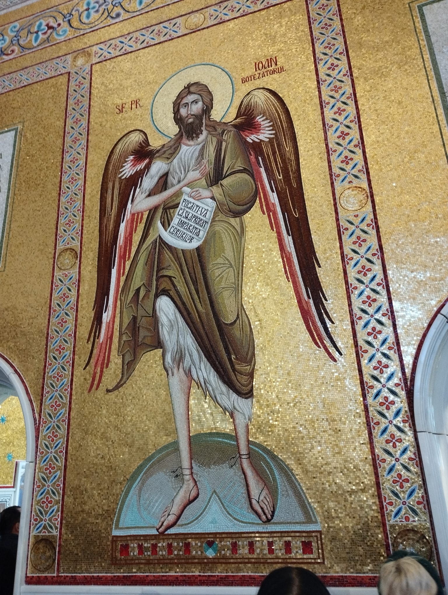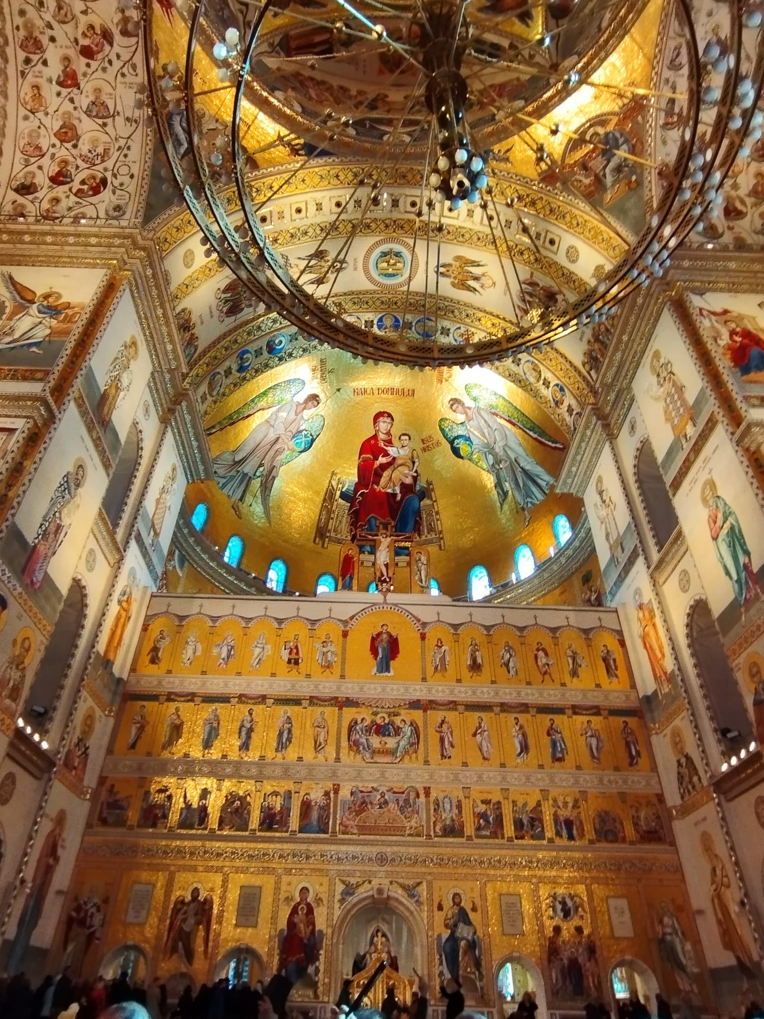 Când intri în Catedrală, inima este cucerită de o icoană singulară a Maicii Domnului, „Platytera” (din greacă: „Cea mai înaltă decât cerurile”, „Împărăteasa Cerurilor”). Este o capodoperă a Ortodoxiei, care se înalță pe 16 metri, potrivit Basilica.ro. Numai chipul Maicii Domnului are aproximativ doi metri, iar al Pruncului Iisus - 1,5 metri. Nimic nu agasează, doar invită să ne deschidem larg inima spre tainică rugăciune. Monumentala lucrare a fost realizată în trei săptămâni, în aprilie 2019. Dificultatea a fost dată de locul în care este așezată, bolta altarului, o suprafață curbată, ce a necesitat multă atenție, profesionalism și inspirație. „Împărăteasa Cerului și a Pământului” Îl poartă în brațe pe Fiul său - „Pâinea Cerească” - și în comuniune ne îmbrățișează pe toți, călăuzindu-ne pașii spre veșnicie.