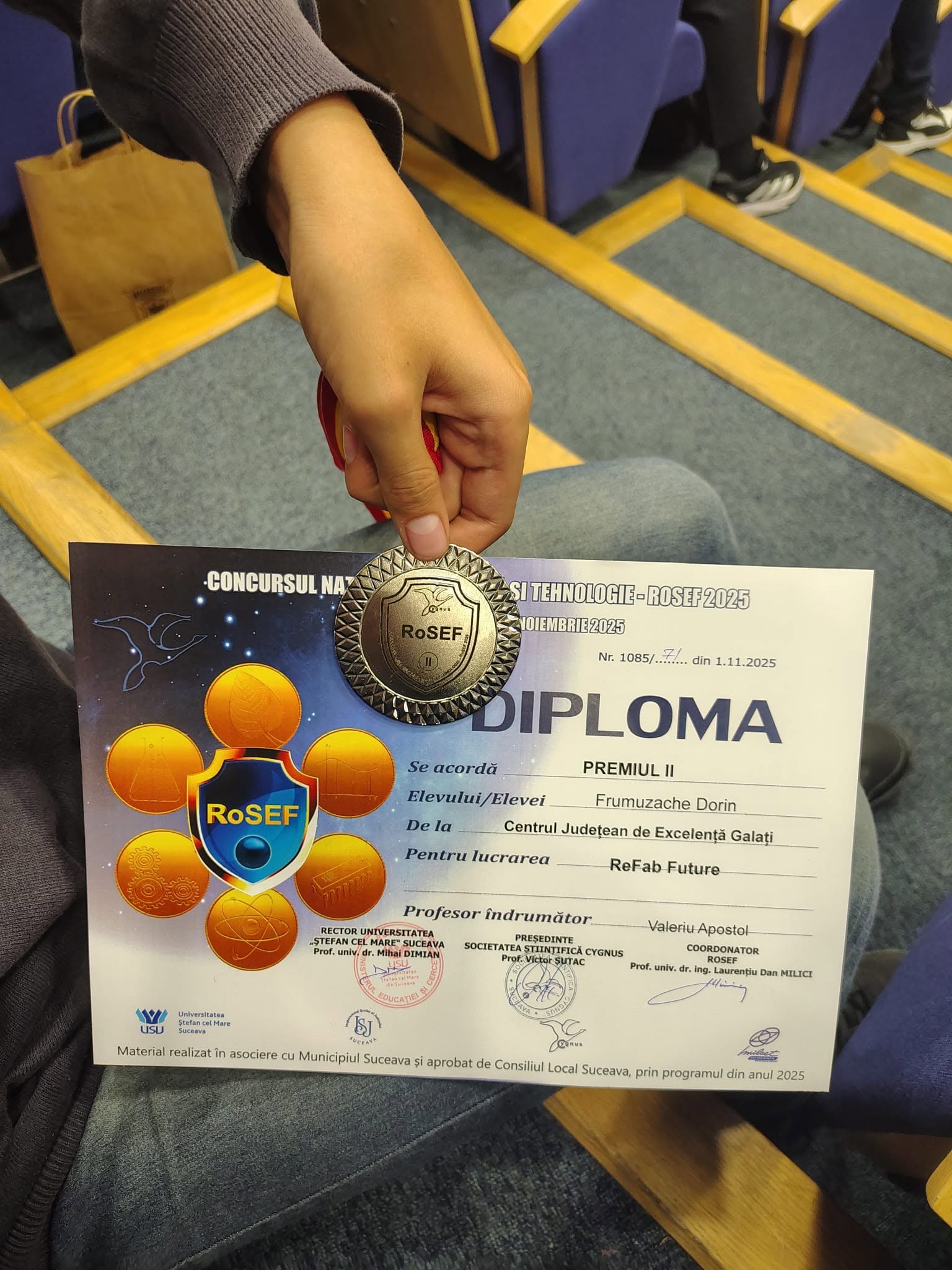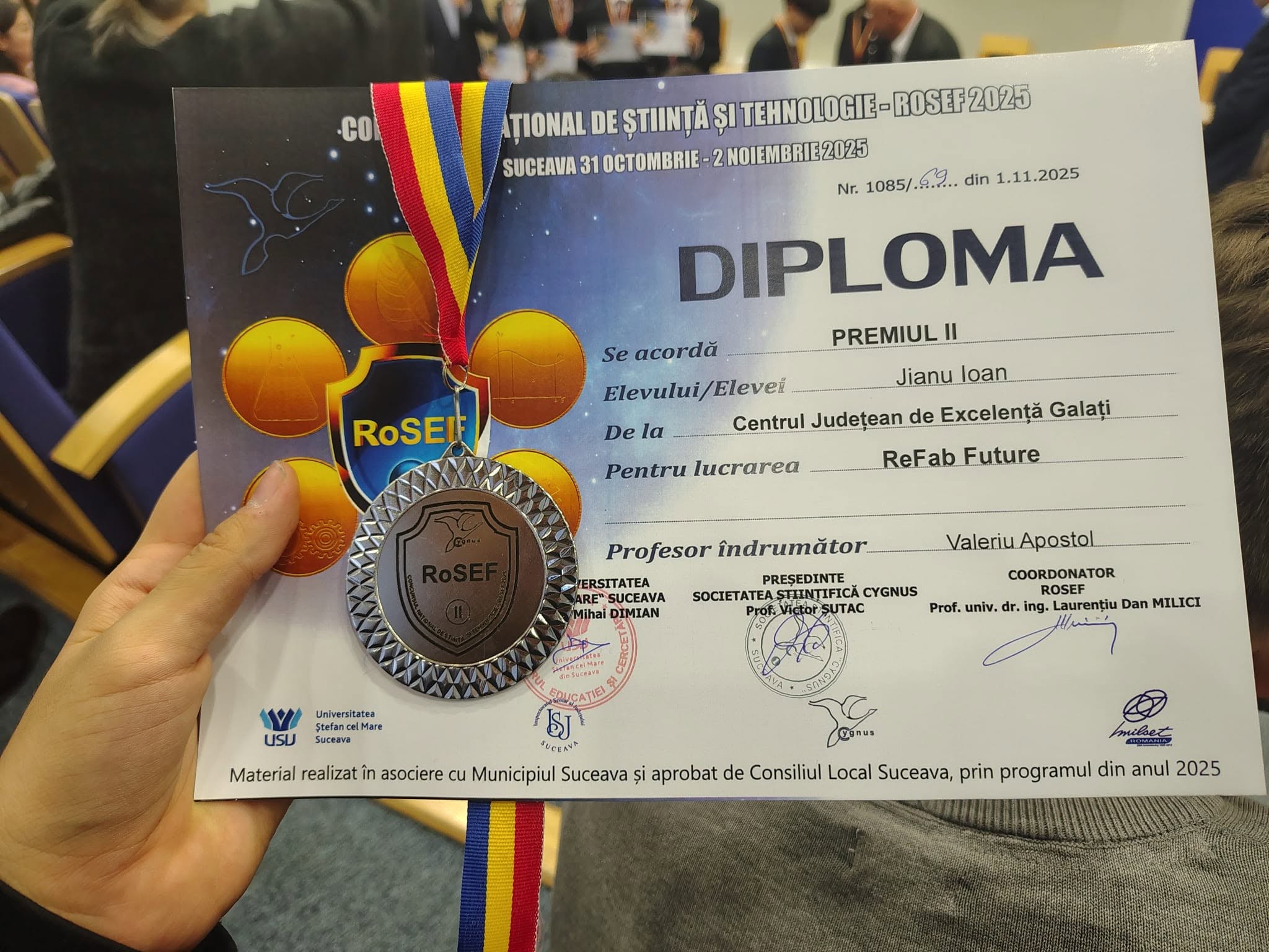 În perioada 31 octombrie - 2 noiembrie 2025, la Universitatea „Ștefan cel Mare” din Suceava, s-a desfășurat cea de-a XIX-a ediție a Concursului Național de Știință și Inginerie RoSEF (Romanian Science and Engineering Fair), unul dintre cele mai prestigioase concursuri de știință și tehnologie dedicate elevilor din România. Centrul Județean de Excelență Galați a participat cu patru echipe de elevi, iar toate s-au întors acasă cu premii importante!