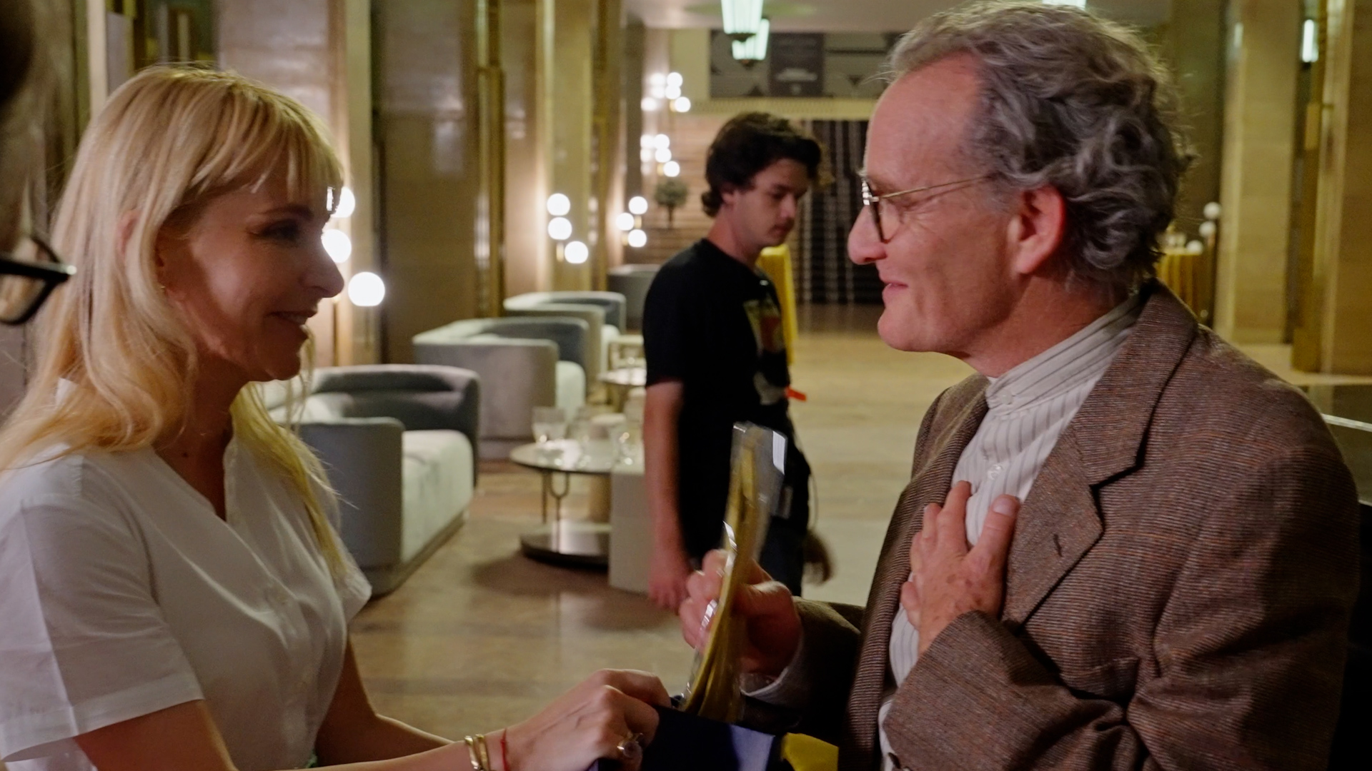 Adela Vrînceanu Celebidachi - Da, am avut suportul Centrului Naţional al Cinematografiei, apoi al mediului privat şi am primit şi susţinerea Oficiului de Film şi Investiţii Cultural. Filmările s-au derulat când Ministerul Culturii era condus de Raluca Turcan, care ne-a ajutat foarte mult cu producţia. Este un proiect în care mediul privat a dat mâna cu autorităţile române, ceea ce nu poate decât să ne bucure. Putem face lucruri frumoase când ne unim forţele.