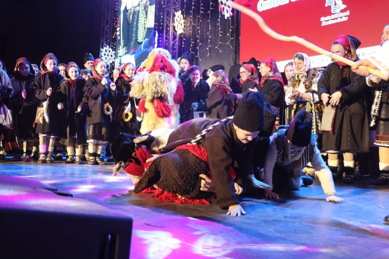 Spectacolul a continuat cu o salbă de colinde şi tradiţii aduse de „Cununiţa” şi „Belciugarii” din Ilva Mare, Bistrița-Năsăud. Sub jocul Caprelor şi-al Cerbilor scena a rezistat… eroic! „Cât e Soarele de sus/ Capre ca la Ilva nu-s!”, de asta chiar ne-am convins!