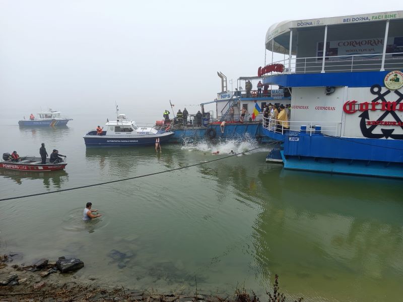 Ceremonia de sfințire a apelor, prilejuită de sărbătoarea Bobotezei, s-a încheiat, așa cum este obiceiul, cu aruncarea crucii în apele Dunării, moment așteptat cu emoție de cei prezenți. Mai mulți tineri curajoși s-au pregătit să sară în apă pentru a aduce crucea la mal. Tradiția spune că viteazul care o prinde va avea sănătate în noul an și va fi ferit de rele și ghinioane.