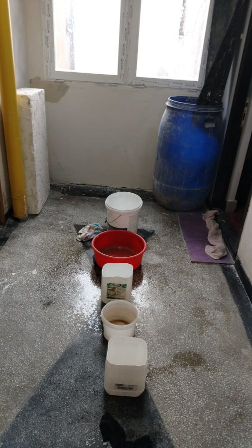 Aurelia Grosu povestește că problemele au început în toamna anului 2025, imediat după decopertarea acoperișului în vederea anvelopării. Deși anterior nu mai avusese infiltrații timp de șapte ani, prima ploaie de după începerea lucrărilor a adus o „cascadă” în fața ușii.
