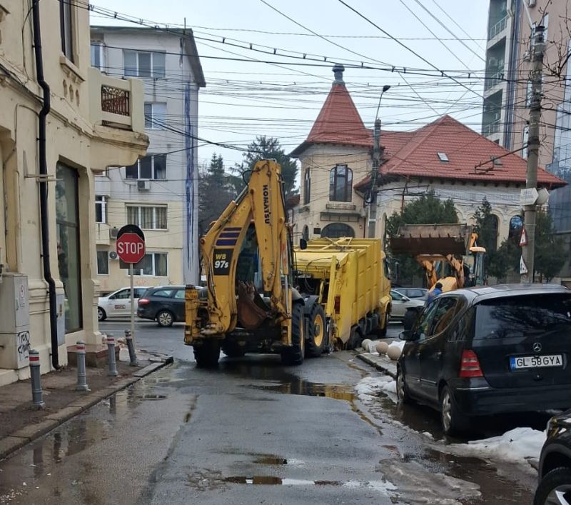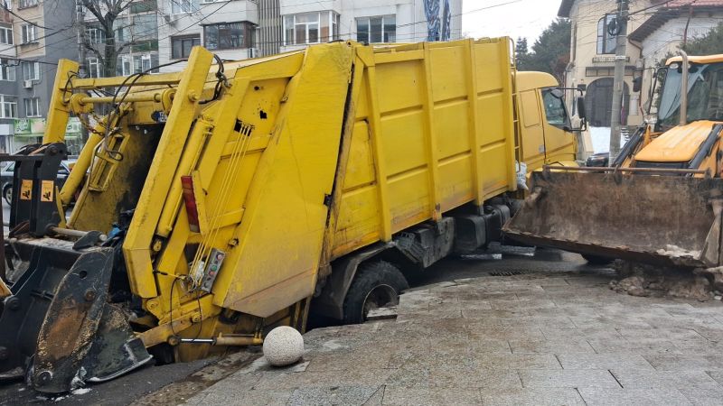 O groapă din centrul Galaţiului a „atacat” o autoutilitară Ecosal (FOTO)