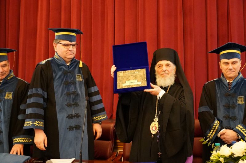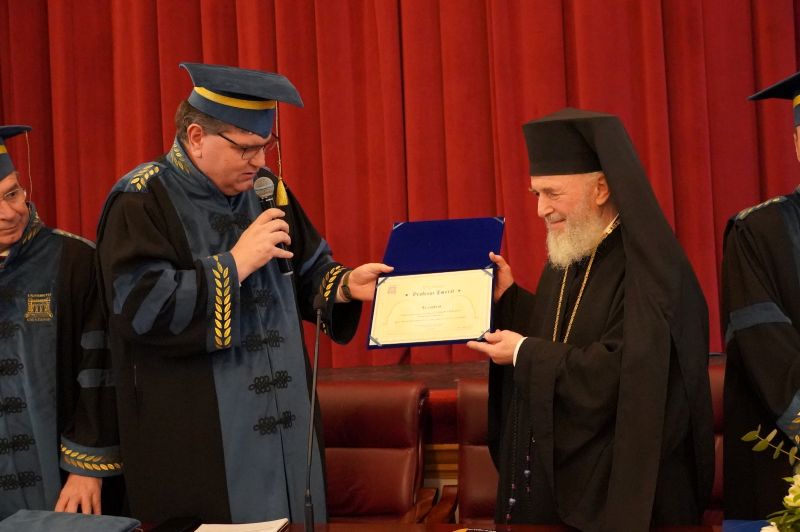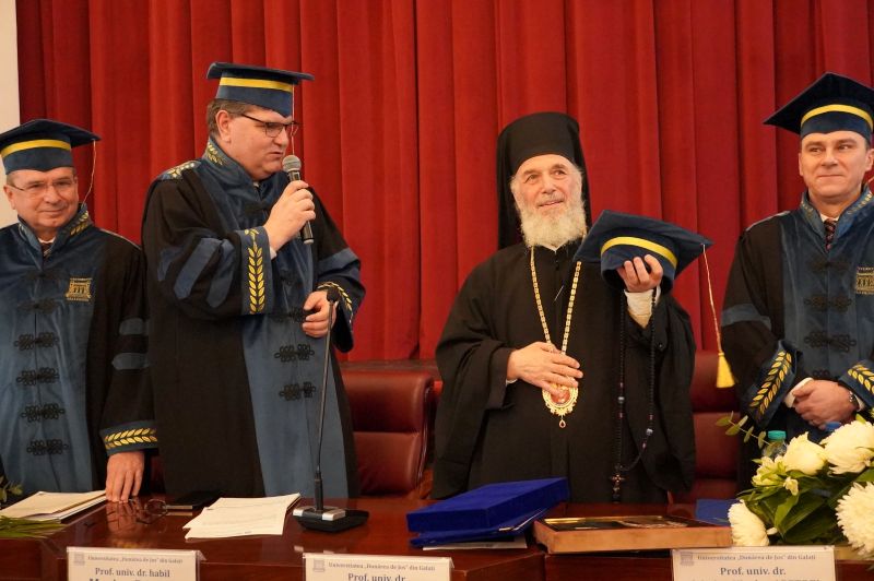 Pentru toate meritele incontestabile prezentate rezumativ în cadrul ceremoniei, Rectorul Universităţii „Dunărea de Jos” din Galaţi i-a înmânat titlul academic de Profesor Emerit Înaltpreasfinţiei Sale, Prof. univ. dr. Casian Crăciun, Arhiepiscopul Dunării de Jos.