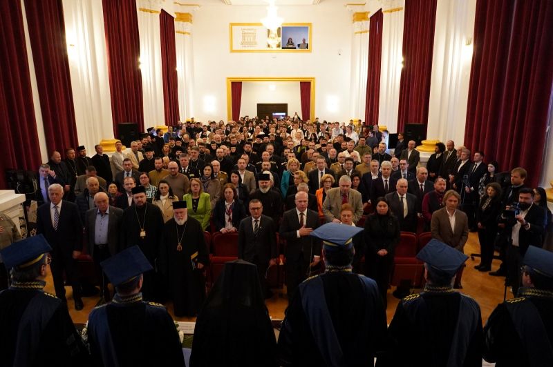 Aşa cum era de aşteptat, ÎPS Casian a început ziua în rugăciune, oficiind Sfânta Liturghie a Darurilor înainte sfinţite în Paraclisul Reşedinţei Arhiepiscopale, în prezenţa membrilor Permamenţei Consiliului Eparhial şi a stareţilor şi stareţelor de la mănăstirile eparhiei. Apoi, a venit în Aula Magna, unde, în deschiderea festivităţii, studenţi ai Facultăţii de Arte din Galaţi şi elevi seminarişti gălăţeni au interpretat Imnul Naţional al României şi „Gaudeamus igitur“.