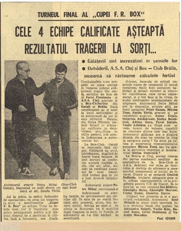Sportivii gălățeni au reprezentat cu onoare România în marile competiții ale lumii, având rezultate extraordinare în aproape toate ramurile sporturilor olimpice. Am făcut cunoștință, până acum, cu gălățenii care au excelat în atletism și gimnastică. Astăzi este rândul să cunoaștem mari boxeri de legendă porniți din Galați, care au cucerit marile ringuri ale lumii.