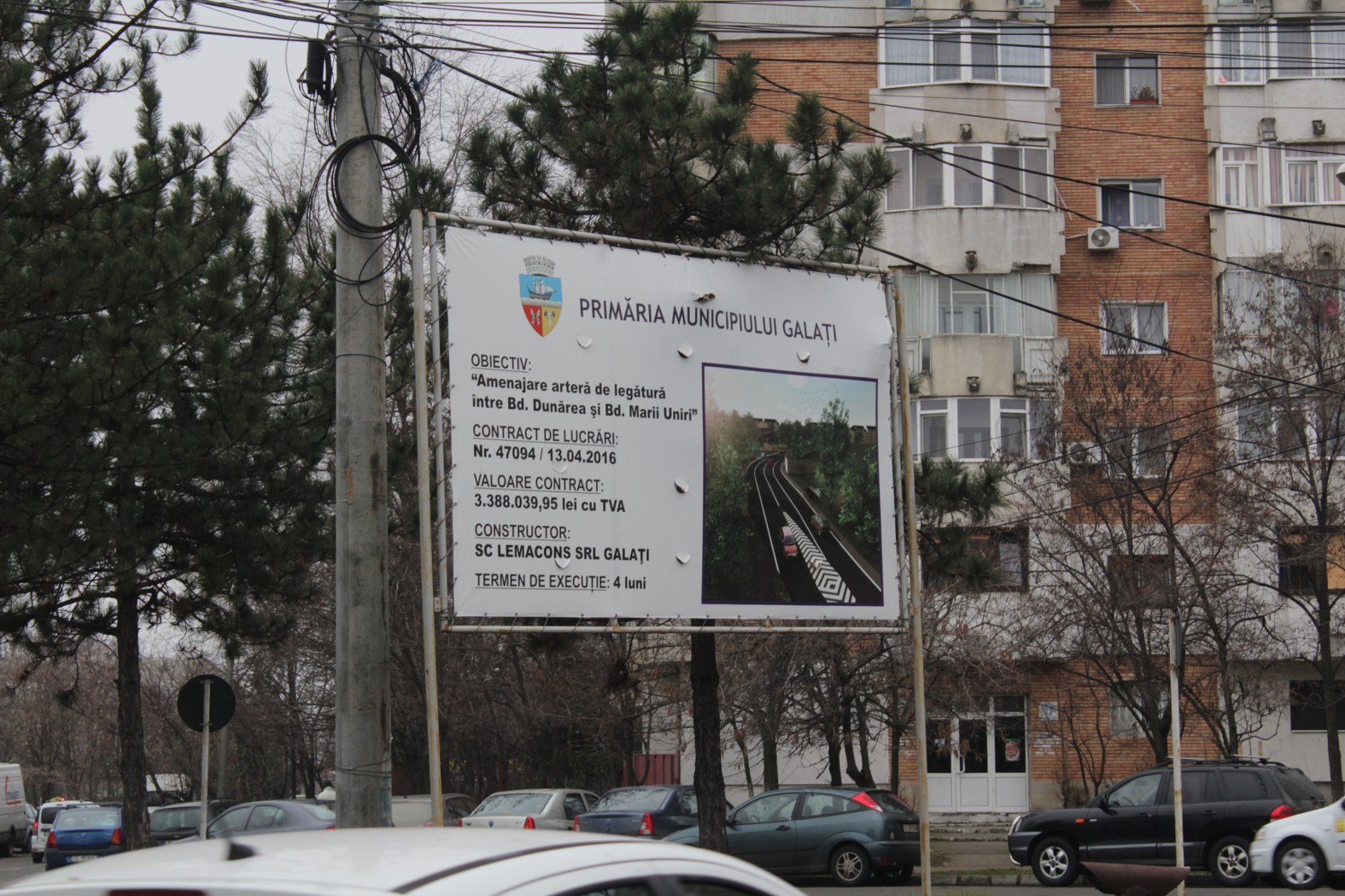 Strada slt. Ionuţ Cosmin Sandu, aşa se va numi artera de legătură între bulevardul Dunărea şi bulevardul Marii Uniri, asta, desigur, dacă se va construi vreodată. Deocamdată celebrul drum prin curtea Poliţiei de Frontieră poate fi străbătut doar cu privirea, pe panoul care a ruginit de când tot anunţă că investiţia va fi gata în patru luni. Deşi contractul pentru execuţia drumului este semnat încă din 13 aprilie 2016 cu firma Lemacons, pentru o sumă de 3.388.039 de lei cu TVA, lucrările nu au început. Partea cea mai proastă este că în iunie se împlinesc trei ani din termenul de cinci ani pe care Guvernul ni l-a impus pentru a construi artera, altfel terenul se reîntoarce în domeniul public al statului.