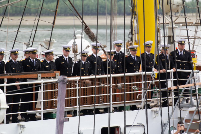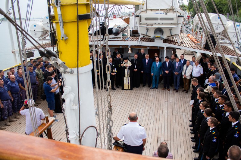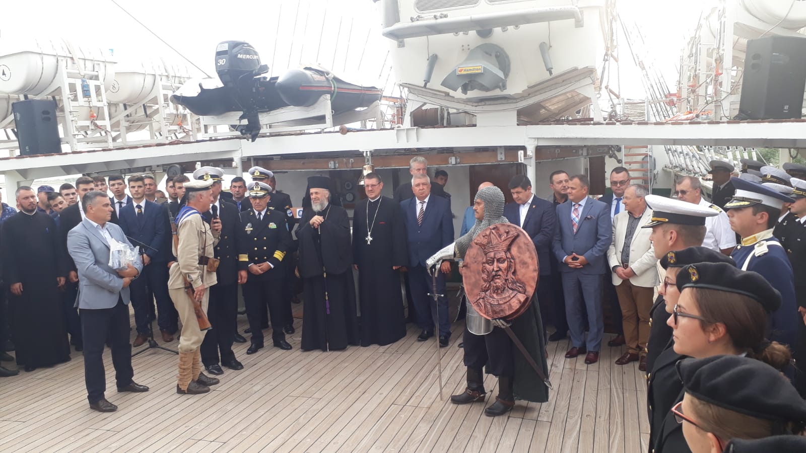La bordul navei, onorurile de gazdă au fost făcute chiar de comandorul Mircea Târhoacă, comandantul bricului "Mircea", alături de care au stat ofiţeri din comandamentul Forţelor Navale, dar şi tinerii cadeţi, puşi „la patru ace”, aşa cum stă bine unor viitori ofiţeri ai marinei române! Atmosfera de sărbătoare a fost completată de arborarea Marelui Pavoaz, dar şi de acordurile festive ale fanfarei Muzica Militară a Forţelor Navale.