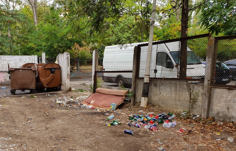 Asta aveam să constatăm la punctul de colectare a gunoiului aferent blocului K8, din spatele sălii de sport a Şcolii Gimnaziale „Mihai Viteazul”. Containerele vandalizate, distruse sau furate sunt o realitate la ordinea zilei. La fel ca gunoaiele aruncate pe geam, care aterizează în tronsoanele dintre blocuri, pe alei sau foste spaţii verzi. Deşeurile se adună morman în jurul fostelor spaţii comerciale, acum nefuncţionale, se stivuiesc pe lângă garduri sau lângă pubelele din vecinătatea căminelor de nefamilişti.