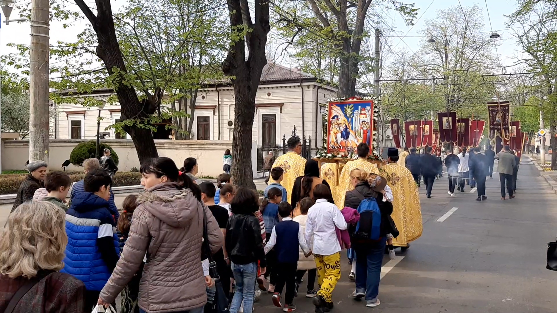 Calea Domnească a prins viaţă prin şirul nesfârşit de preoţi şi pelerini care s-au îndreptat spre Catedrala Arhiepiscopală, intonând troparul sărbătorii şi alte cântări specifice perioadei liturgice a Sărbătorilor Pascale.
