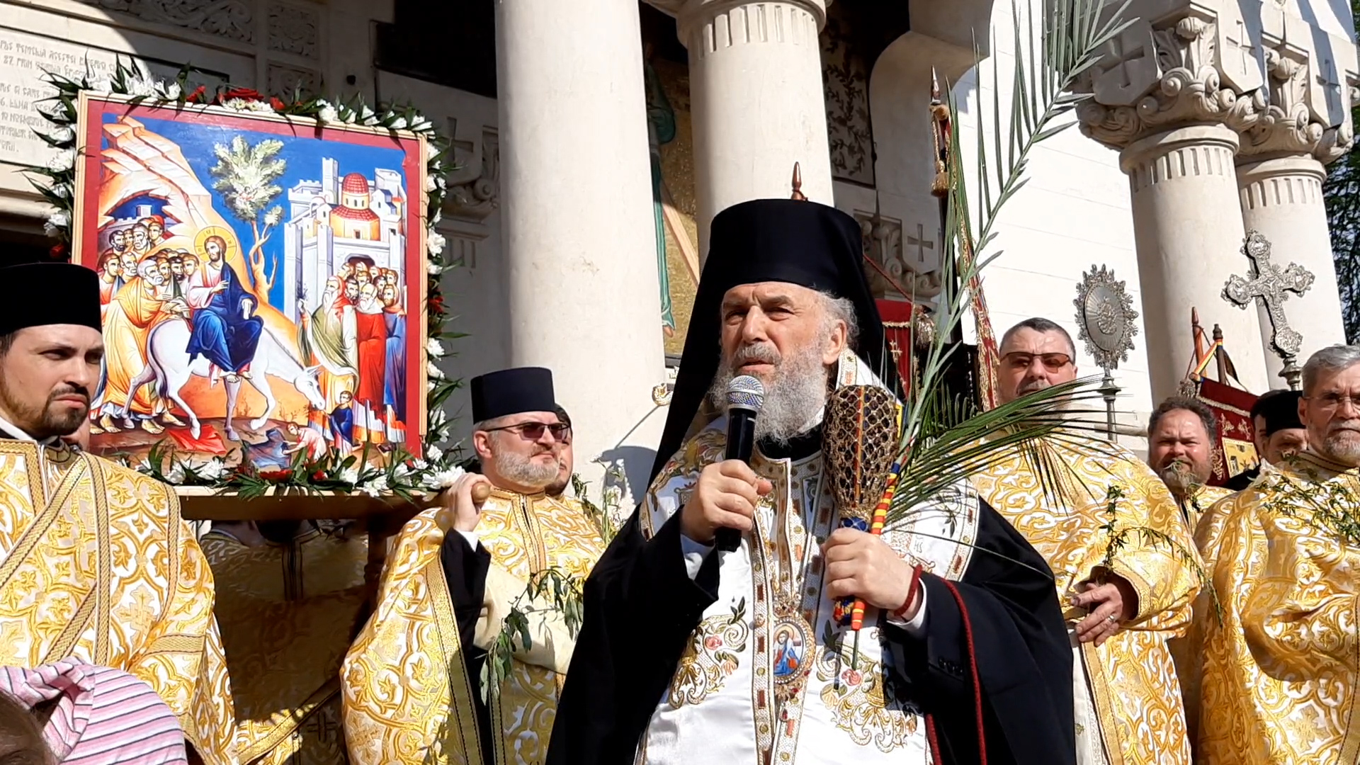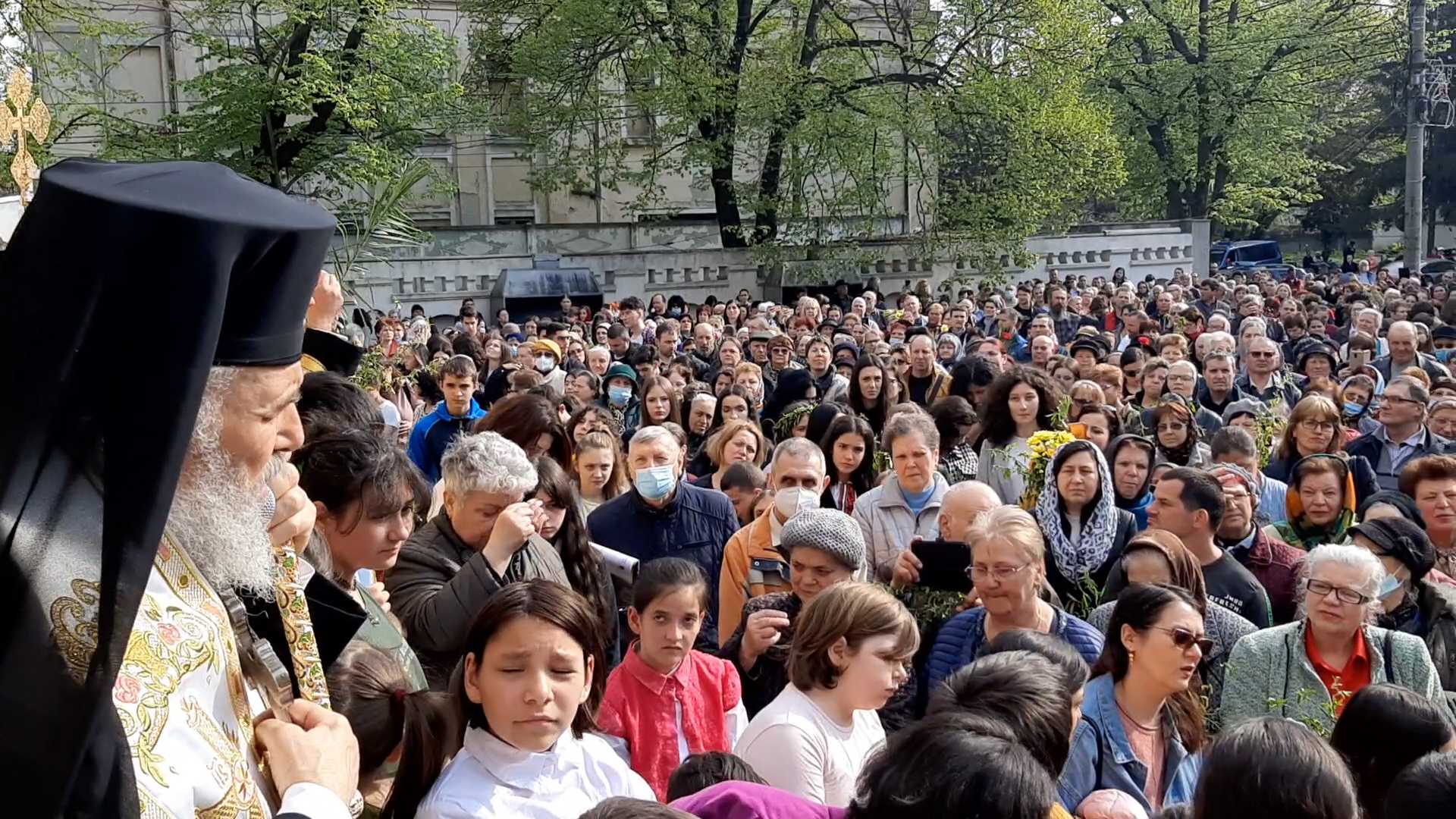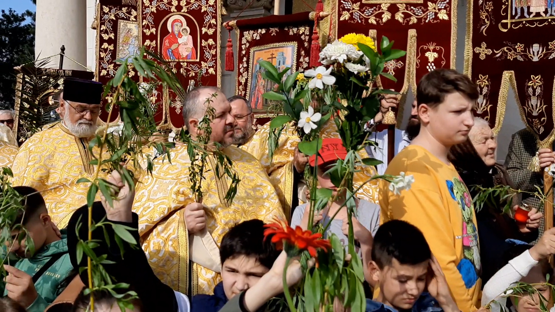 Pelerinii s-au adunat cu mic, cu mare, fiecare purtând ramuri de salcie și florile recunoștinței, în preajma bisericii ”Vovidenia”, pentru a urma apoi, în procesiune spre Catedrala Arhiepiscopală, icoana Intrării Domnului în Ierusalim.