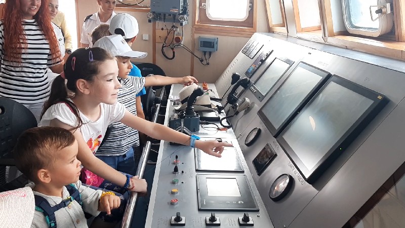 Puntea de comandă de pe monitorul ”Mihail Kogălniceanu” este și ea plină de mateloți aspiranți. ”Uite, de aici vedem unde suntem! Iar de aici vorbim!”, zice o fetiță care pare deja familiarizată cu echipamentele de navigație. În plus, ce amintire mai frumoasă poate fi pentru puștime decât o fotografie cu chipiul de ofițer, chiar pe postul comandantului navei!