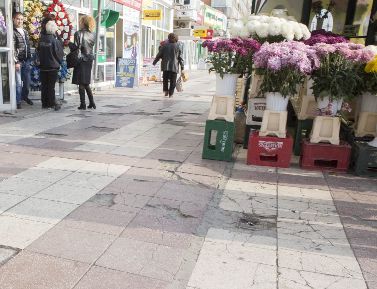 Mozaicul de pe trotuarele din zonă, se înţelege, nici cel din staţia "Transurb" a Spitalului Judeţean, nu este într-o bună formă. Neschimbat de ani buni, le dă mult de furcă pietonilor. "Apreciem că se fac unele lucrări de refacere a trotuarelor şi bordurilor în municipiul Galaţi, dar aici, în această zonă foarte solicitată - că mai toţi ajungem pe la spital - ar trebui să se urgenteze lucrările. Sunt multe plăci lipsă, iar când plouă, bălţile nu mai contenesc", reclamă Ioniţă Spiru, pensionar în vârstă de 58 de ani.