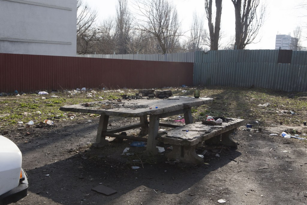 În timp ce treceam în revistă problemele cartierului, nu am putut să nu observăm gunoiul care s-a adunat în spatele căminului E, de băieţi, din campus. Nici nu ne-am putut apropia foarte mult, din cauza câinilor care păzesc zona, dar şi de la distanţă se putea vedea că terenul este acoperit de saci de gunoi rupţi şi de resturi menajere împrăştiate. Văzând un asemenea peisaj, putem doar să ne imaginăm cu ce mirosuri se confruntă studenţii care locuiesc în căminul cu pricina, pe durata verii.