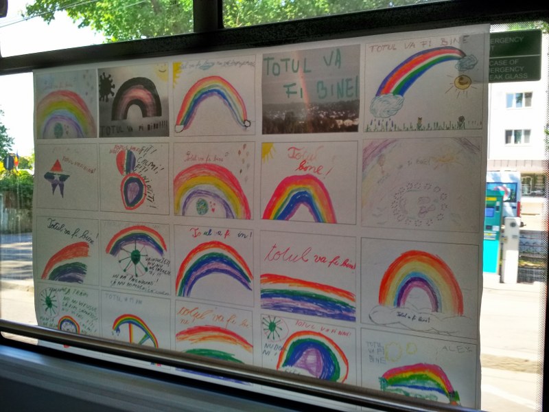 De 20 de ori "Totul va fi bine!" şi tot atâtea curcubeie pline de speranţă. Este afişul pe care l-au putut privi gălăţenii care au călătorit, în ultimele zile, cu autobuzele Transurb. Desenele, unele surprinzător de inspirate şi îndrăzneţe, altele fermecătoare prin inocenţa şi naivitatea mânuţei care le-a realizat, alcătuiesc un colaj numai bun de admirat şi înţeles pentru această perioadă plină de incertitudini şi temeri.